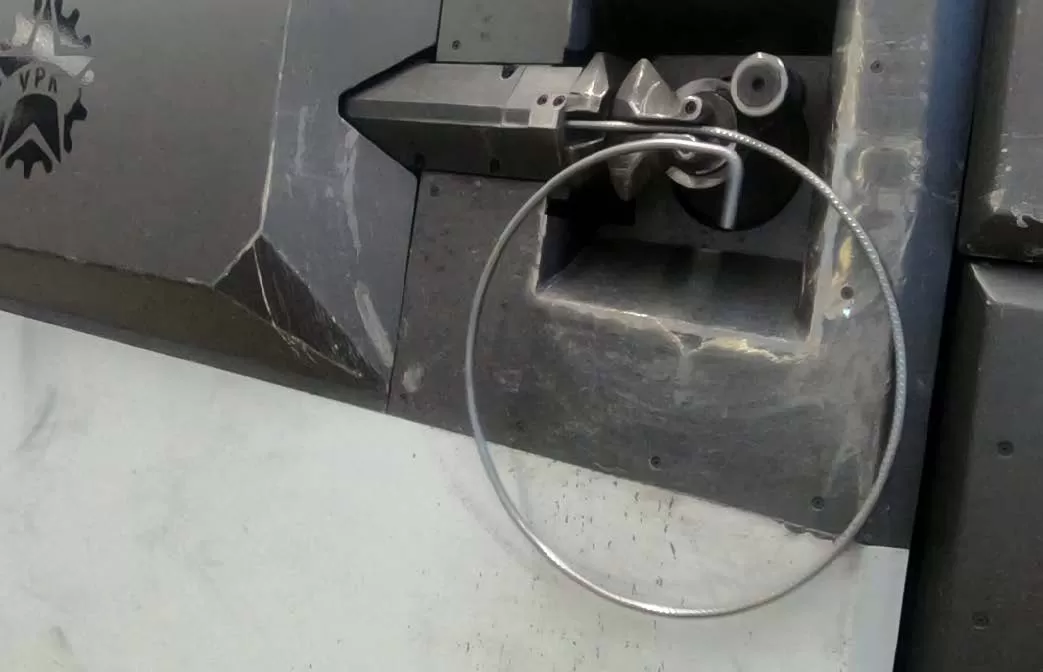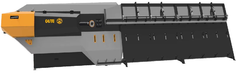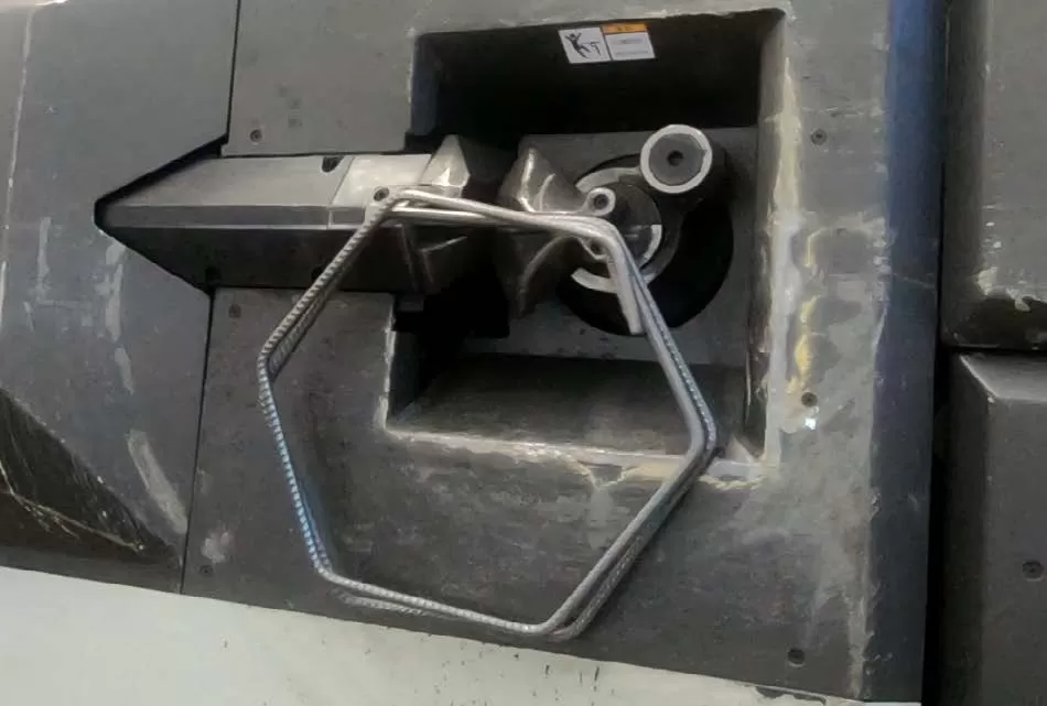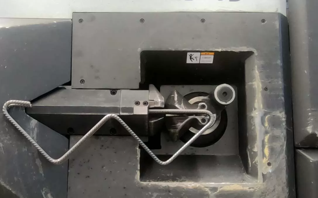Правильно-гибочный станок с ЧПУ для работы с арматурной сталью. Возможность изготовления деталей в 3-х плоскостях. Обрабатывает арматуру диаметром до 12 мм. Максимальная скорость протяжки 75-100 м/мин. Мощность 35 кВт.