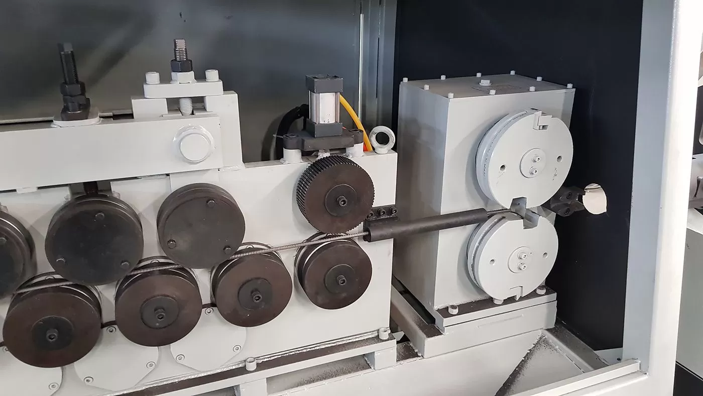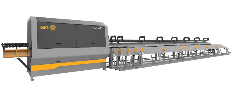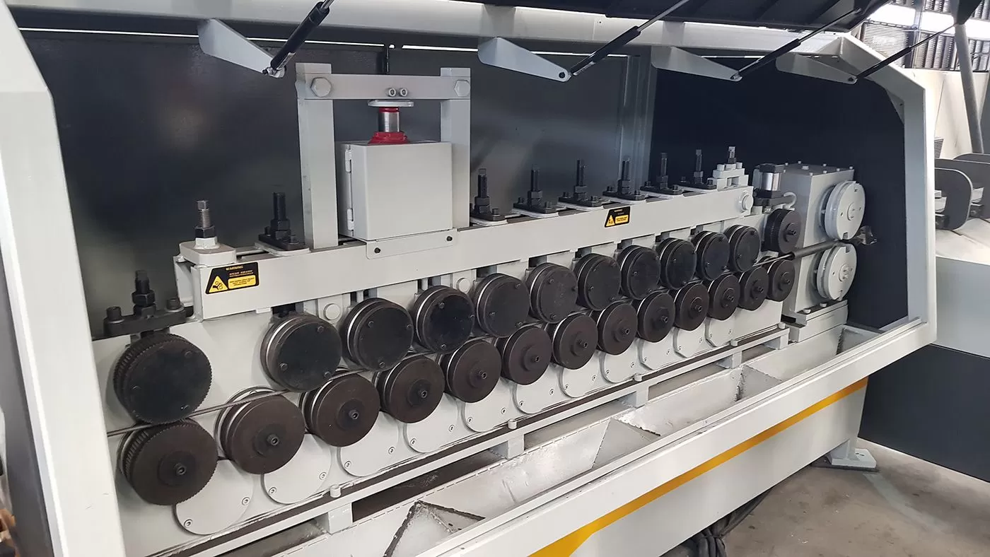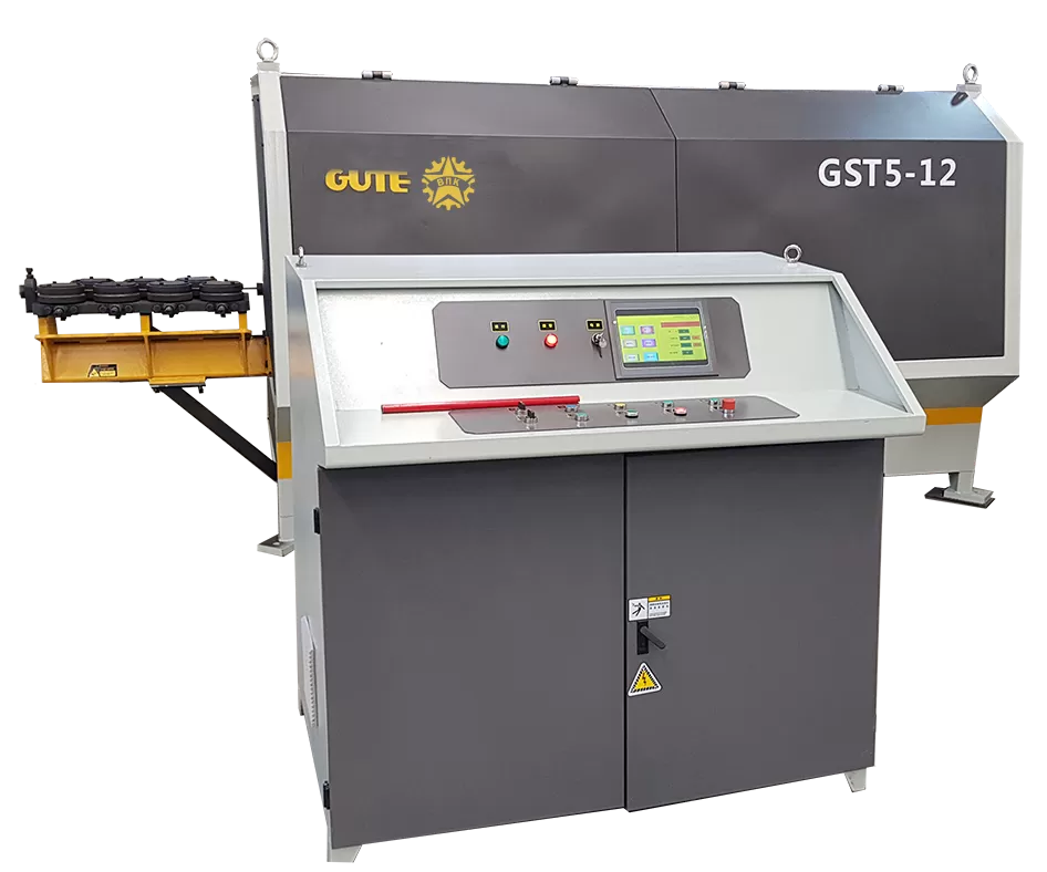 Высокоскоростной правильно-отрезной станок GST5-12. Обрабатывает арматуру диаметром от 5 до 12 мм. Скорость выпрямления (протяжки) 120 м/мин. Мощность 61 кВт.