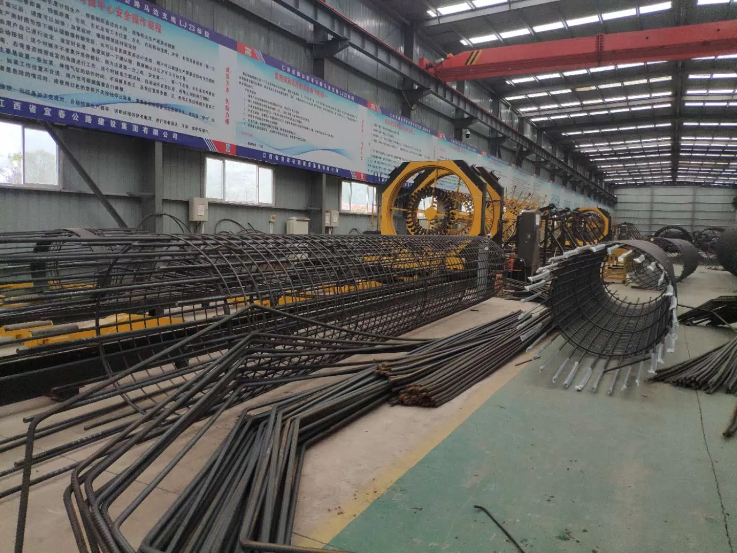 Полуавтоматическая линия с ЧПУ для навивки и сварки каркаса из арматурной стали. Скорости движения и выпрямления арматуры контролируются. Диаметр каркаса 400-2000 мм. Диаметр навивочной арматуры 5-14 мм. Максимальная длина каркаса 12 метров.
