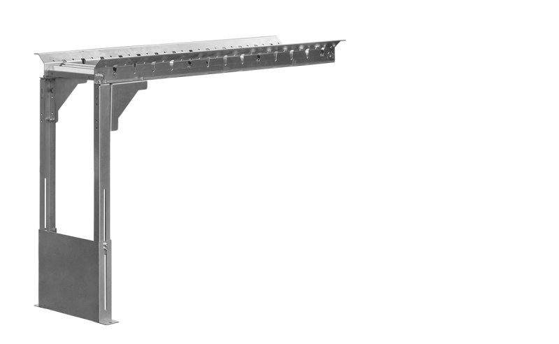 Каждая опора имеет 2 комплекта направляющих, для изменения высоты рольганга (высоты рольганга — от пола до рабочей поверхности роликов):