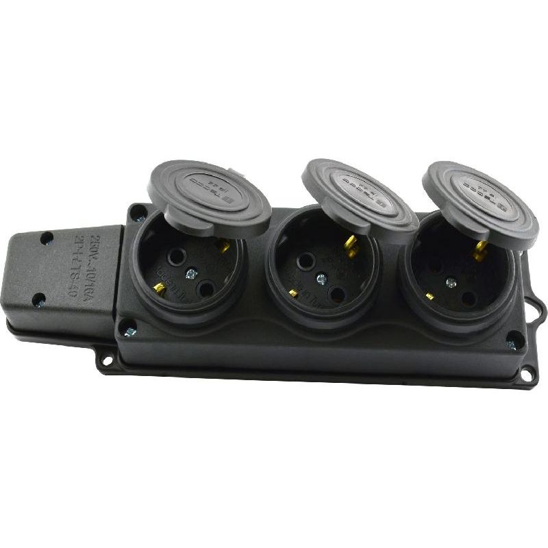 Колодка удлинителя (3 м, каучук с/з, 2P+E 16А Tecco) — блок из нескольких розеток, предназначенный для замены вышедшего из строя или устаревшего изделия. Используется для подключения электроприборов мощностью до 3,5 кВт, которые находятся на расстоянии от стационарно установленного источника питания. Пригодна для эксплуатации на открытом воздухе при температуре окружающей среды до +35 °С, а также во влажных и запыленных помещениях. Применяется на строительных площадках, в производственных цехах, быту.