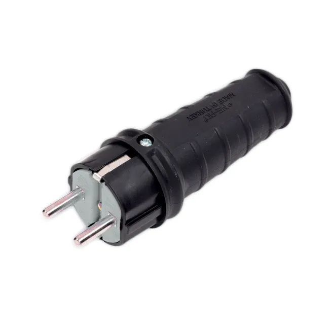 Вилка с/з прямая (каучук) 2Р+E 16А, NE-AD с заземлением широко используется на производстве, в строительстве и ремонтных работах, а также в быту. Это оборудование, при помощи которого осуществляется соединение мощных электрических приборов с центральной сетью через розетку. Если ее купить, то можно облегчить себе работу в любых погодных условиях, в том числе при повышенной влажности.