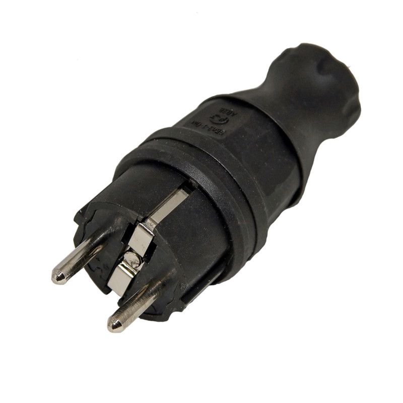 Вилка с/з прямая (каучук) 2Р+E 16А, Т-Пласт (31.01.301.0300)