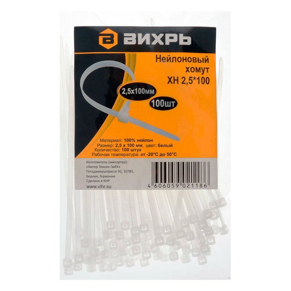 Хомут нейлоновый ВИХРЬ 2,5*100 Б