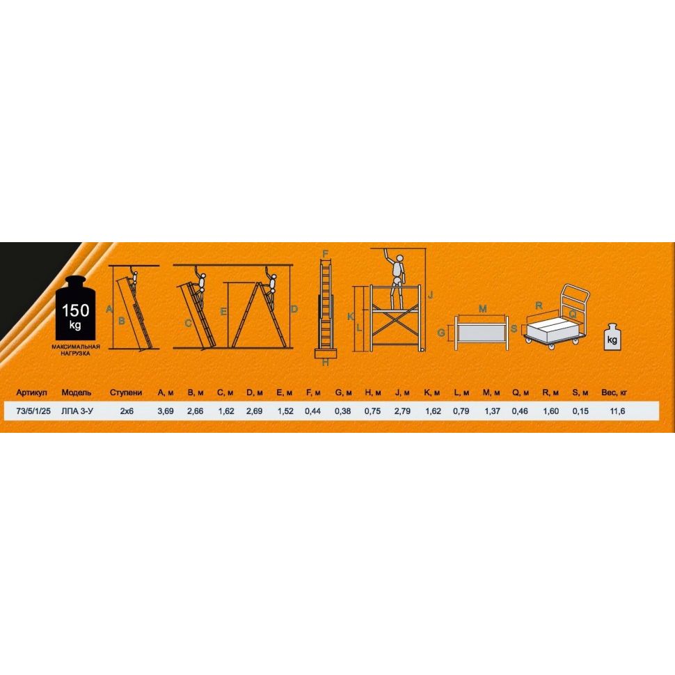 Лестница — помост алюминиевая ВИХРЬ ЛПА 3-У предназначена для обеспечения удобства работы на высоте.