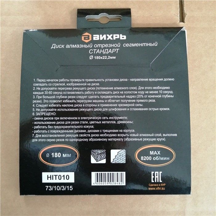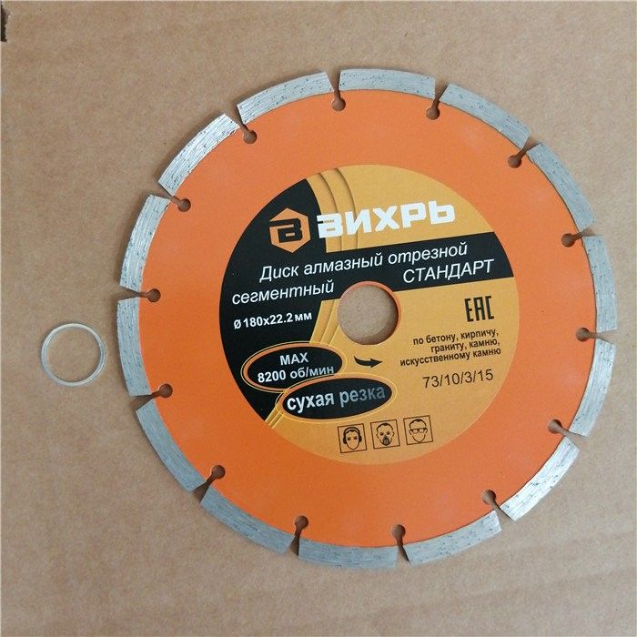 Диск алмазный отрезной сегментный СТАНДАРТ, 180 х 22,2 мм, сухая резка Вихрь — это алмазный отрезной диск, который используется совместно с угловыми шлифмашинами (болгарками) для сухой резки гранитных, бетонных, кирпичных и каменных изделий.Особенности: