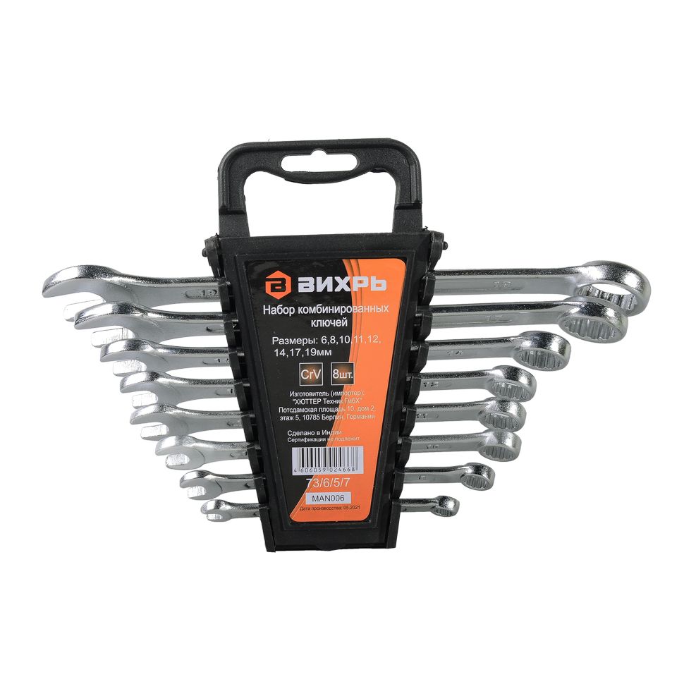 Набор комбинированных ключей ВИХРЬ 8 шт