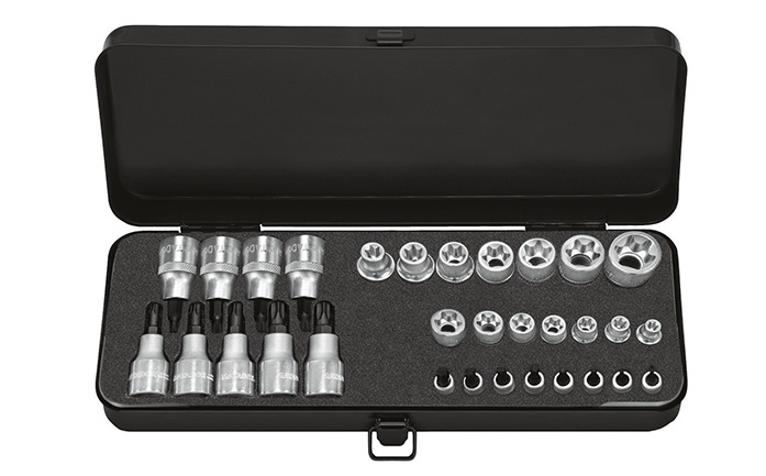 Большие наборы из 31 головки TORX под крепление 1/4″ и 1/2″. Головки размером Е4 — Е24 и Т8 — 60 соответственно. В стальном кейсе.