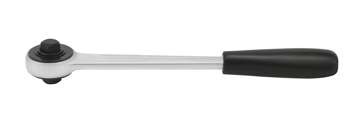 Вставная реверсивная трещотка под головки 1/2″. С кнопочным замком. С рычагом переключения передач для правого и левого направления вращения. Малый шаг с 36 зубьями.