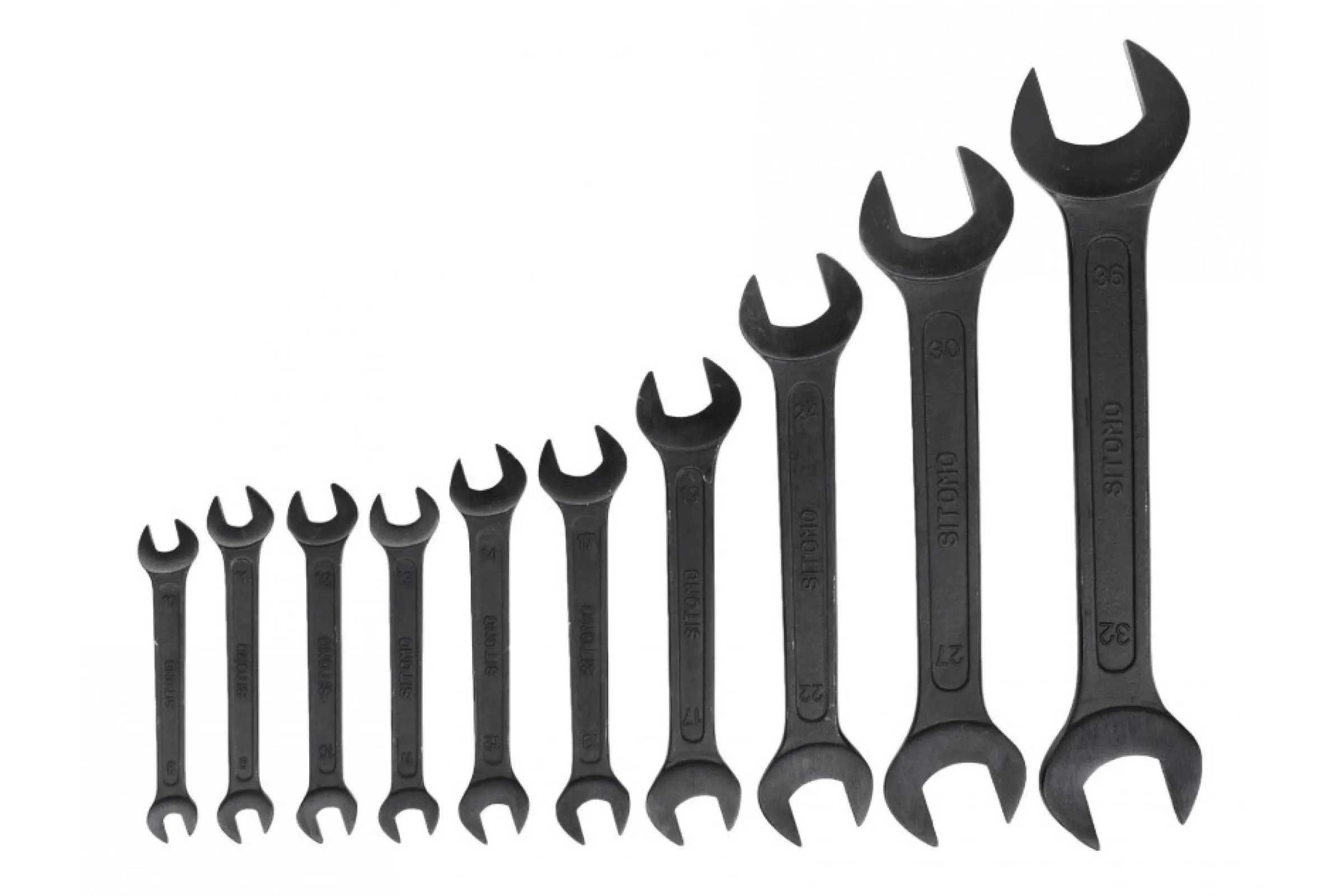 Набор гаечных рожковых двусторонних ключей 10 шт SITOMO 43118 подходит для применения на производстве или в быту. За счёт данного набора, значительно ускоряется отворачивание и заворачивание крепежных элементов в нормальных условиях, а также в ограниченном пространстве. Обеспечивается высокий крутящий момент и небольшой угол возврата. Различные комбинации размеров делают подходящим данный набор для установки крепежных элементов разной сложности, а также обеспечивается простота работы с шестигранным крепежом. Для страгивания и силовой протяжки не предназначена трещоточная часть ключа и торцевые головки.
