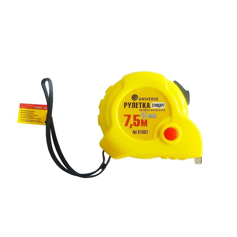 Измерительная рулетка 7,5м х 25мм «Стандарт» UNIVERSE предназначена для осуществления измерительных работ. Она используется в таких сферах, как: строительство, домашнее хозяйство, ремонтные и ландшафтные работы. Данный инструмент отлично подойдет для профессионального применения.