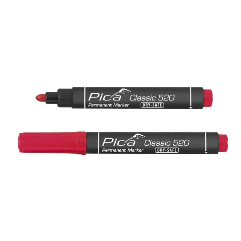Закругленный красный наконечник. Толщина линии 1-4мм. Не высыхает 14 дней с открытой крышкой. Перманентные чернила на спиртовой основе. Водостойкий. Не стирается через приблизительно 10 сек.