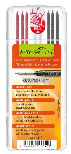 Набор грифелей для карандаша PICA-Dry 3030 (3 красных, 2 белых, 3 графитовых) в пенале.