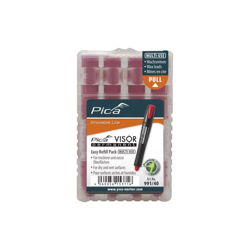 Сменные картриджи для маркера PICA-VISOR 990/40 (цвет: красный, 4 шт.), в пенале.