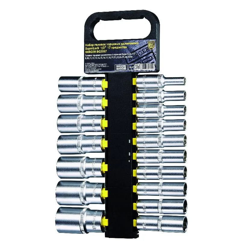 | Наименование | Набор головок торцевых удлиненных1/2 SuperLock 17 предметов BERGER BG2037 |