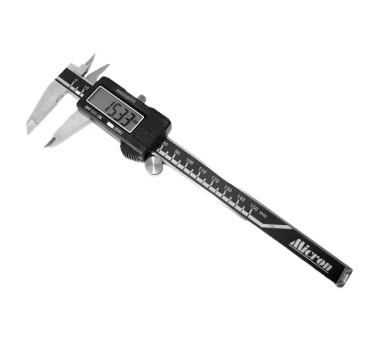 Имеет внешние и внутренние губки и глубиномер. Цифровой блок облегчает считывание показаний. Имеет функцию установки на ноль в любом положении, а также имеет возможность производить измерения в дюймах. Специальный разъем позволяет выводить данные на внешний накопитель.