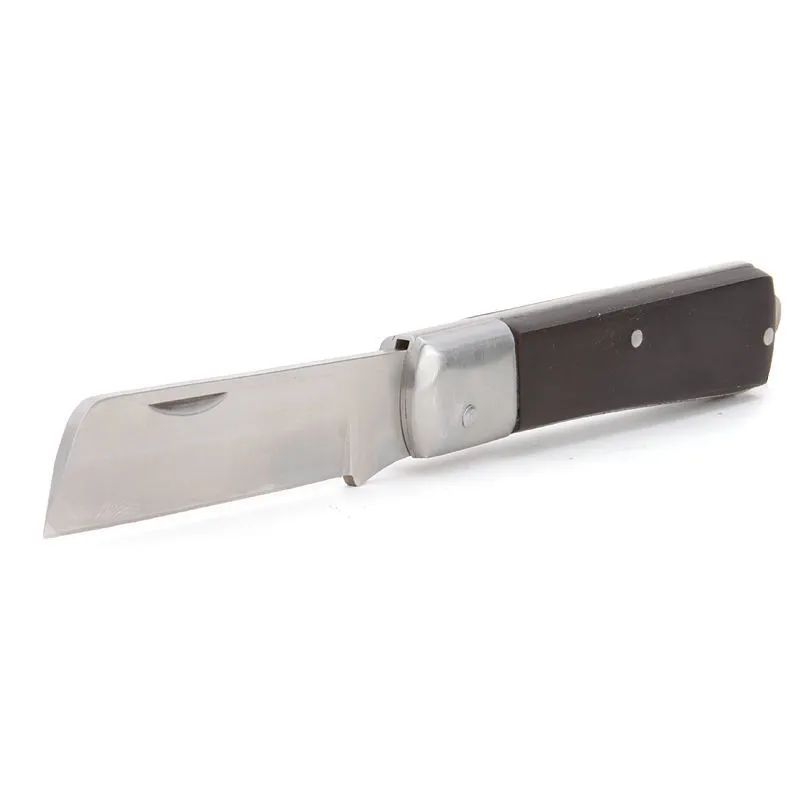 Складной нож для зачистки изоляции с проводов, мелкого ремонта. Заточенная часть лезвия не примыкает плотно к металлическому стопору, что способствует дольшему сохранению остроты лезвия. Нож можно открывать не снимая перчаток. Имеет крепление для фиксации ножа на ремне.