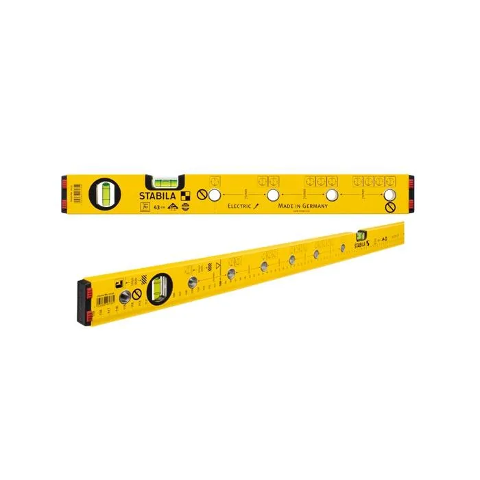 Stabila 70 Electric — это специальный профессиональный строительный уровень с отверстиями, который используют при нанесении маркировки на фиксированных расстояниях при электромонтажных работах.