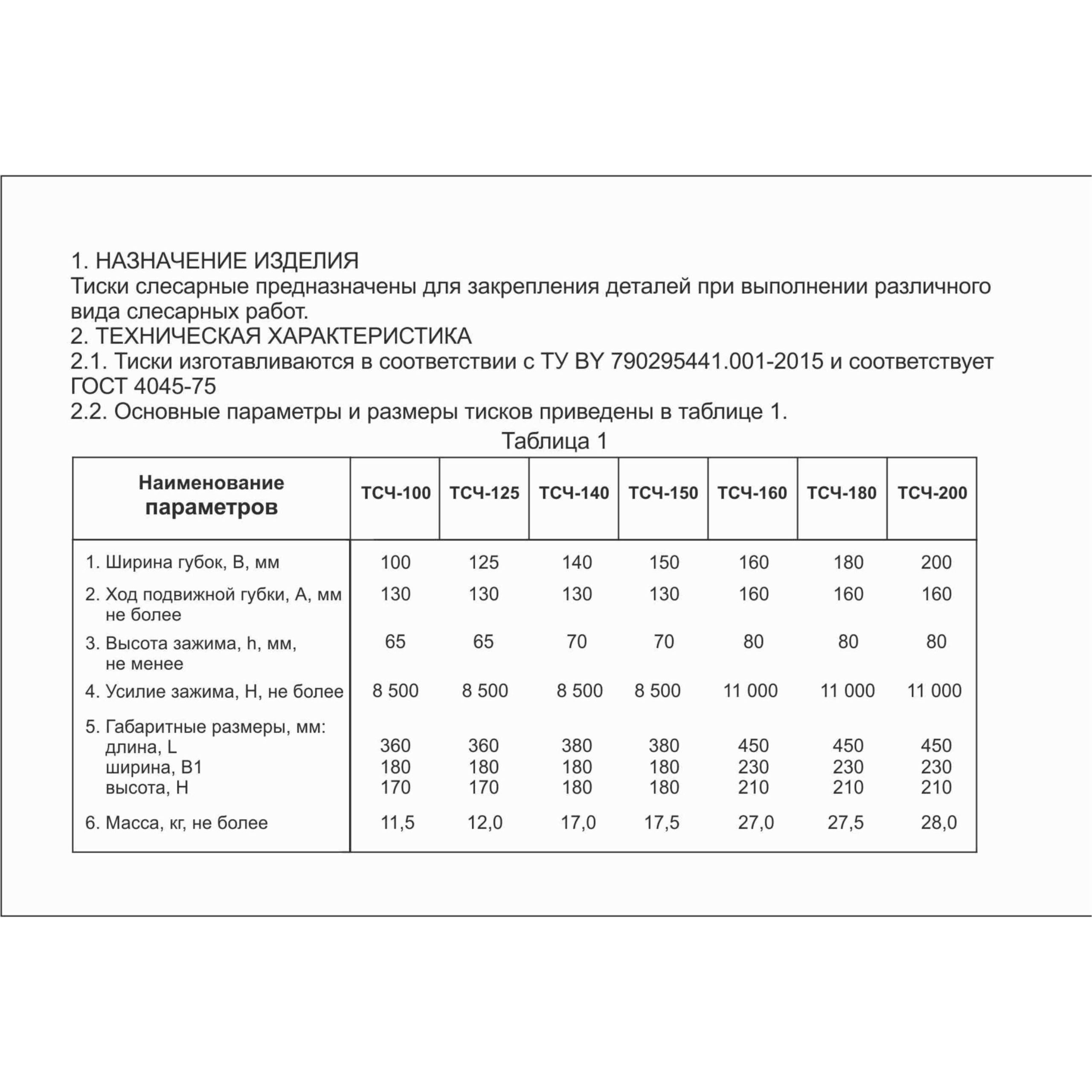 | Наименование | Тиски слесарные поворотные ТСЧ-150 мм |