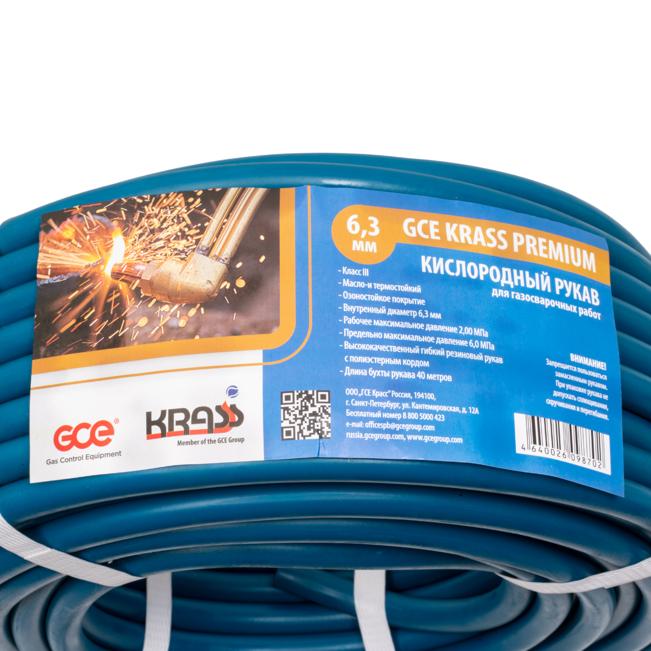 Рукав газовый III класс Ø 6,3 мм кислород (синий) (бухта 40м)