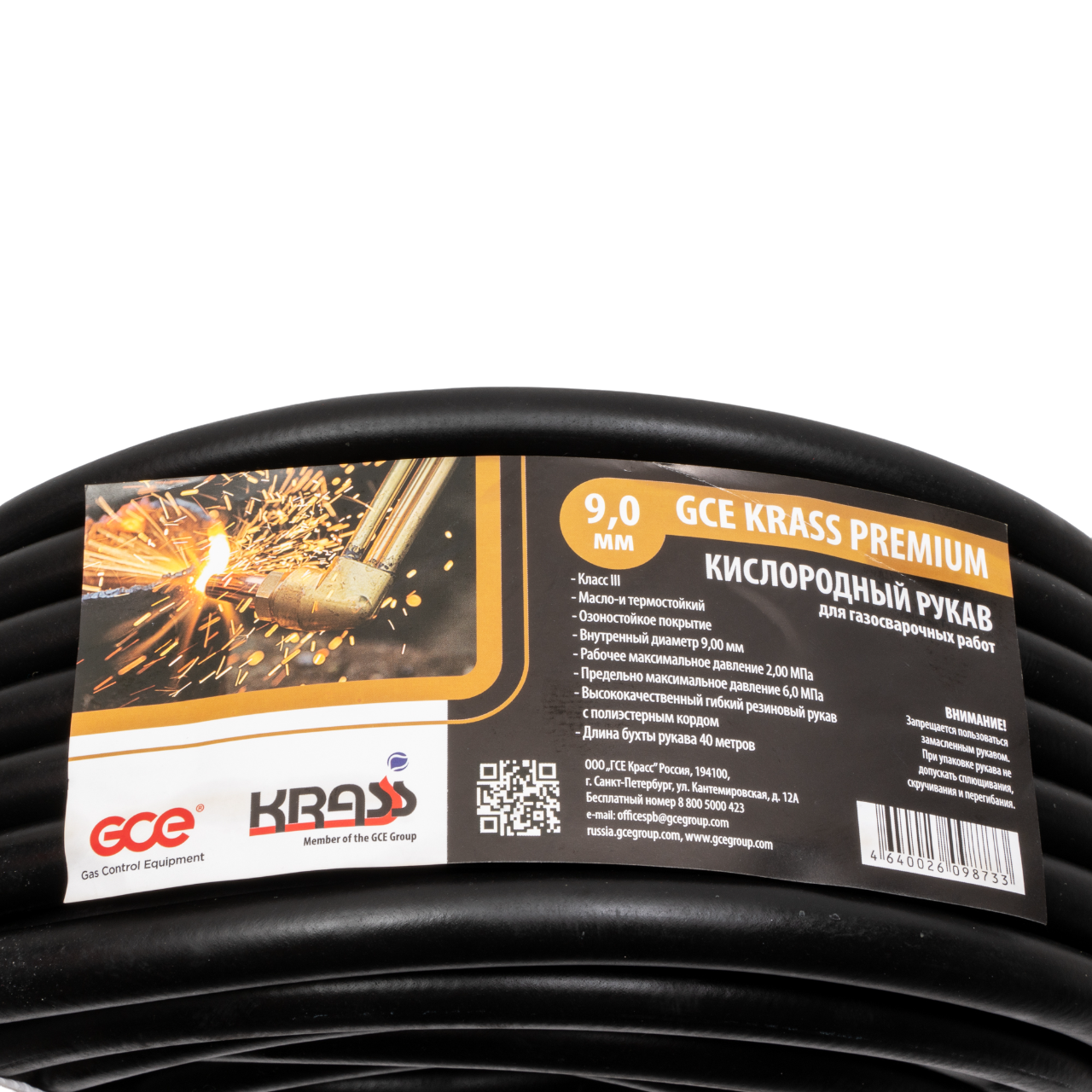 Рукав газовый III класс Ø 9,0 мм кислород/инертные газы (азот, аргон, воздух, углекислый газ и т.д.) (черный, бухта 40м)