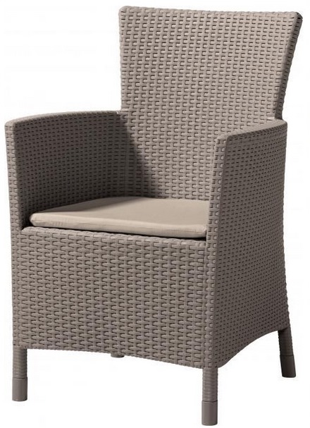 Iowa — это элегантное и комфортное садовое кресло, предлагаемое в комплекте с подушкой. Широкая гамма цветов и оригинальная, подобная ротанговой, фактура поверхности придется по вкусу даже самым требовательным пользователям. Изготовлено из стойкой к воздействию УФ-излучения и погодных условий высококачественной пластмассы. Очень просто собирается и легко чистится.