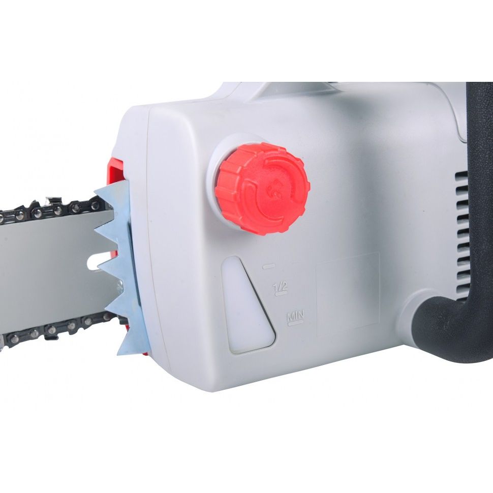 — Надежное удержание. Удобная задняя рукоятка небольшого размера с пусковым курком жестко сидит в руке, что способствует надежному удержанию электропилы.