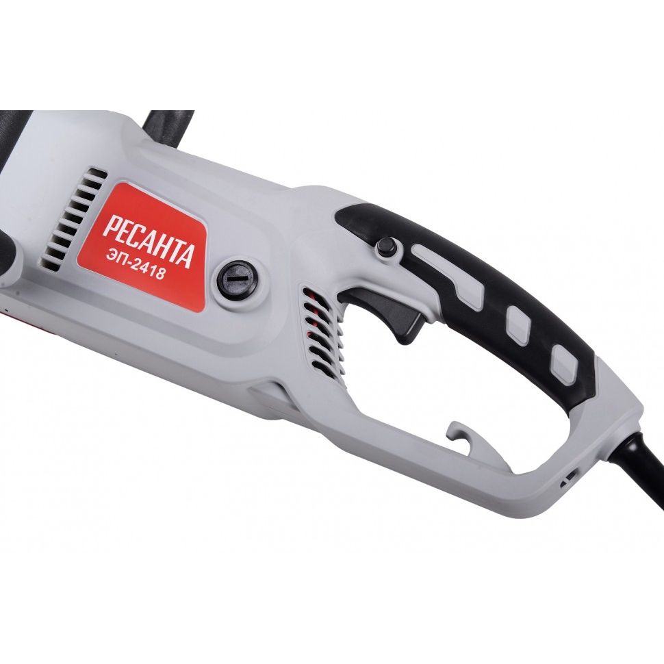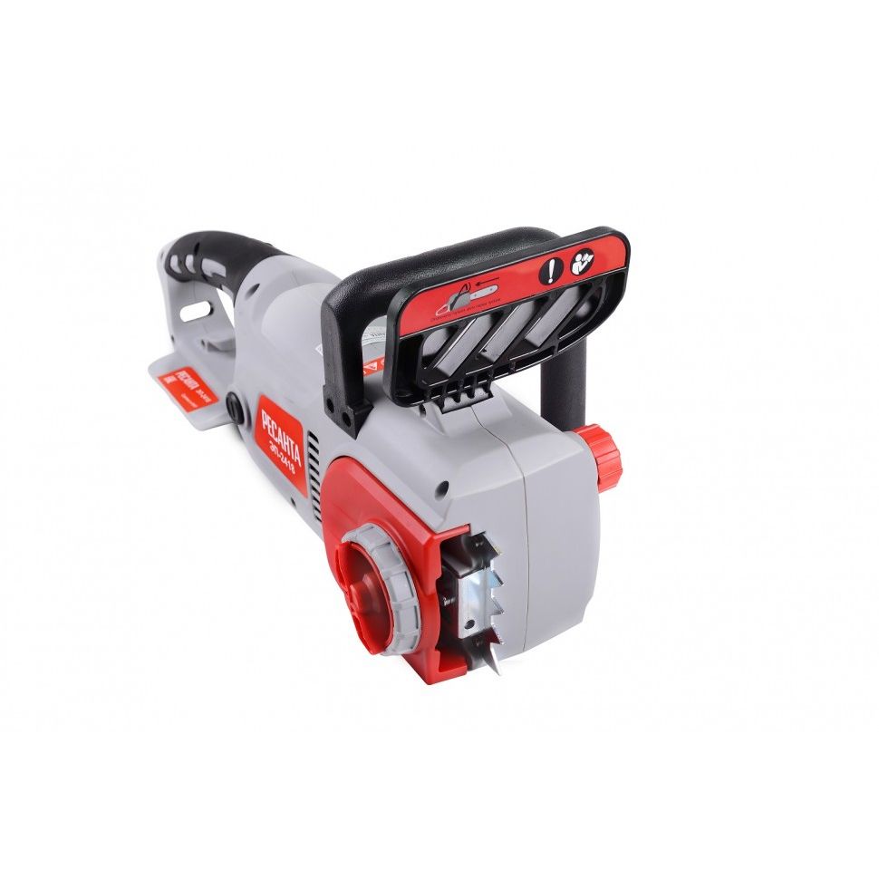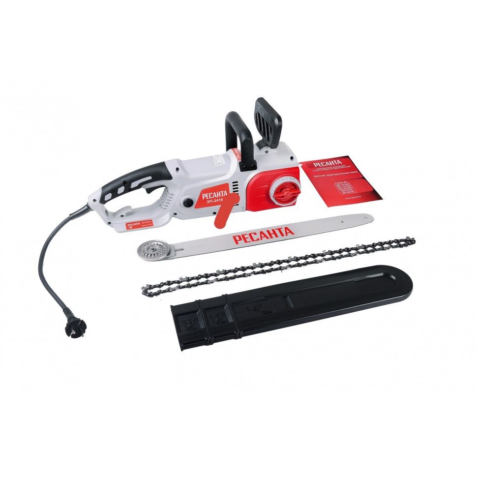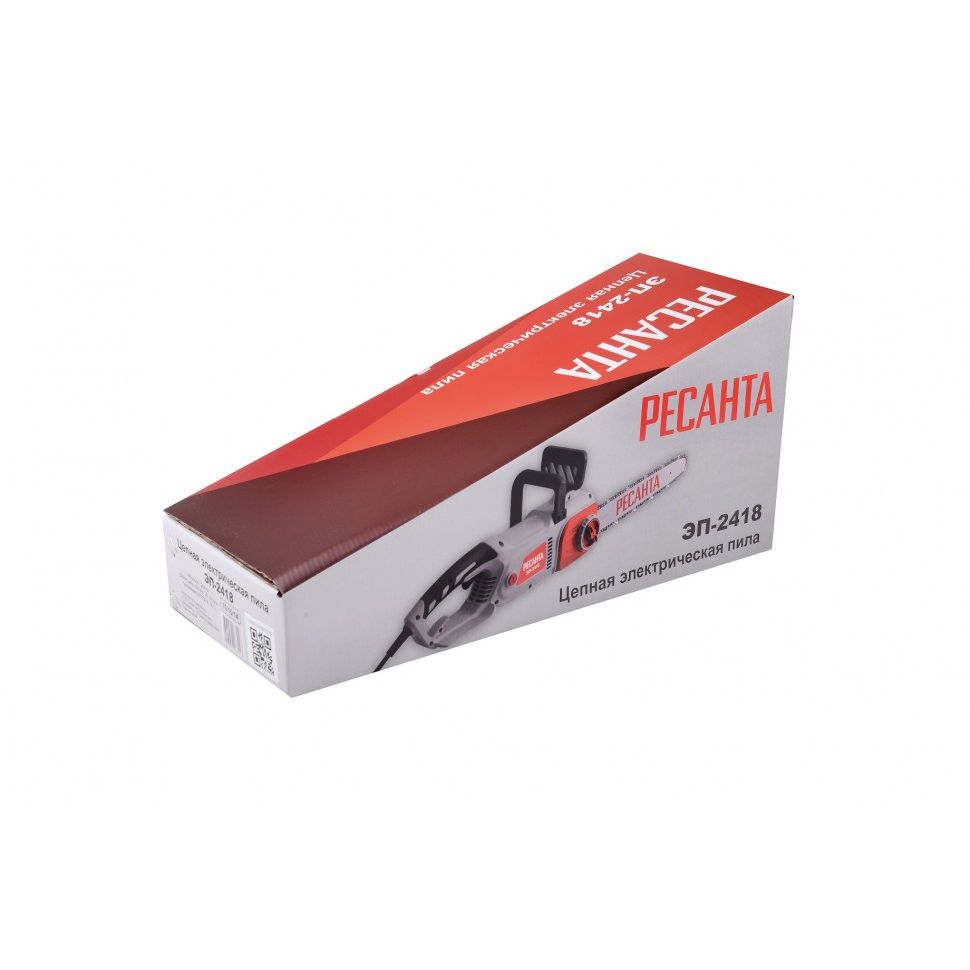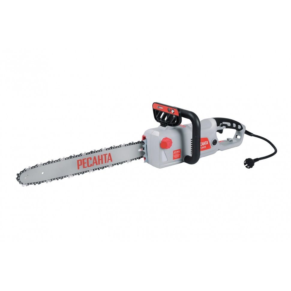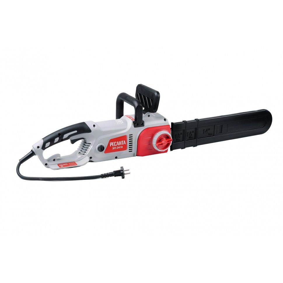 Электропила Ресанта ЭП-2418 является самым мощным инструментом в линейке бытовых пил. Аппарат служит для лёгких и средних работ: распиловка бревен, валка садовых деревьев, обрезка сучьев. Благодаря обрезиненной рукоятке держать такой агрегат в руках удобно и комфортно. Привод цепи осуществляется за счет электродвигателя, который работает от сети переменного тока 220В.