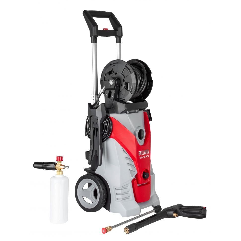Мойка высокого давления Ресанта предназначена для мойки велосипедов, транспортных средств, авто и мототехники, фасадов зданий, дорожек, садовых принадлежностей и т.д. Мойка МР-220 ПРОФ обладает очень большим ресурсом благодаря надёжному бесщёточному асинхронному электродвигателю и алюминиевой помпе с водяным охлаждением. Данная мойка имеет целый ряд преимуществ, таких как высокая мощность и производительность, удобный барабан для шланга, телескопическая рукоятка, профессиональный пеногенератор, 8-метровый шланг высокого давления. Возможность забора воды даже из ёмкости делает её удобной в любых условиях эксплуатации.