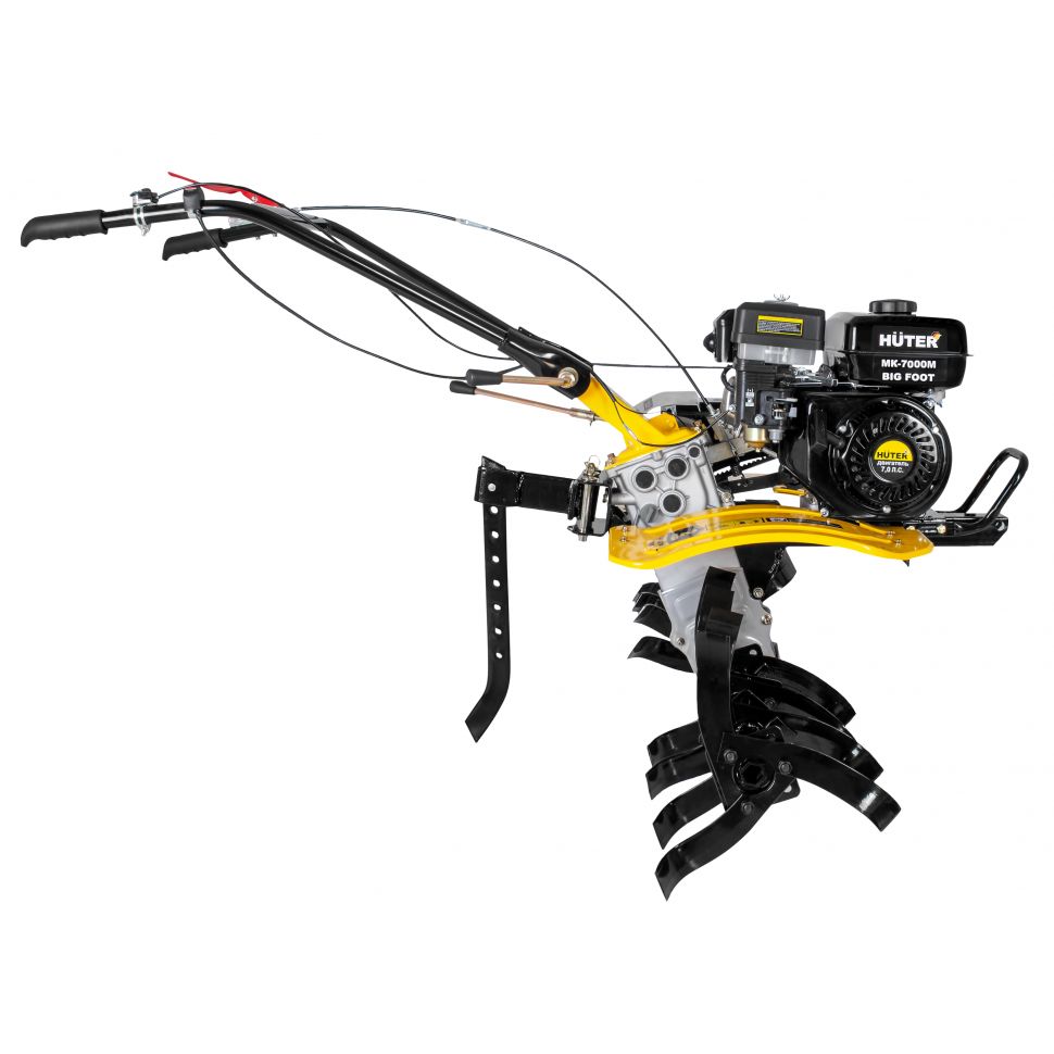 Мотокультиватор HUTER MK-7000M BIG FOOT используется для обработки почвы методом культивации, то есть её рыхления без переворота почвы, выравнивания, других операций. Агрегат дает хорошие результаты на приусадебных и фермерских хозяйствах и дачных участках, на ограниченных территориях, междурядьях, на клумбах и возле деревьев. Мотокультиватор укомплектован четырёхтактным двигателем внутреннего сгорания.Устройство мотокультиватора