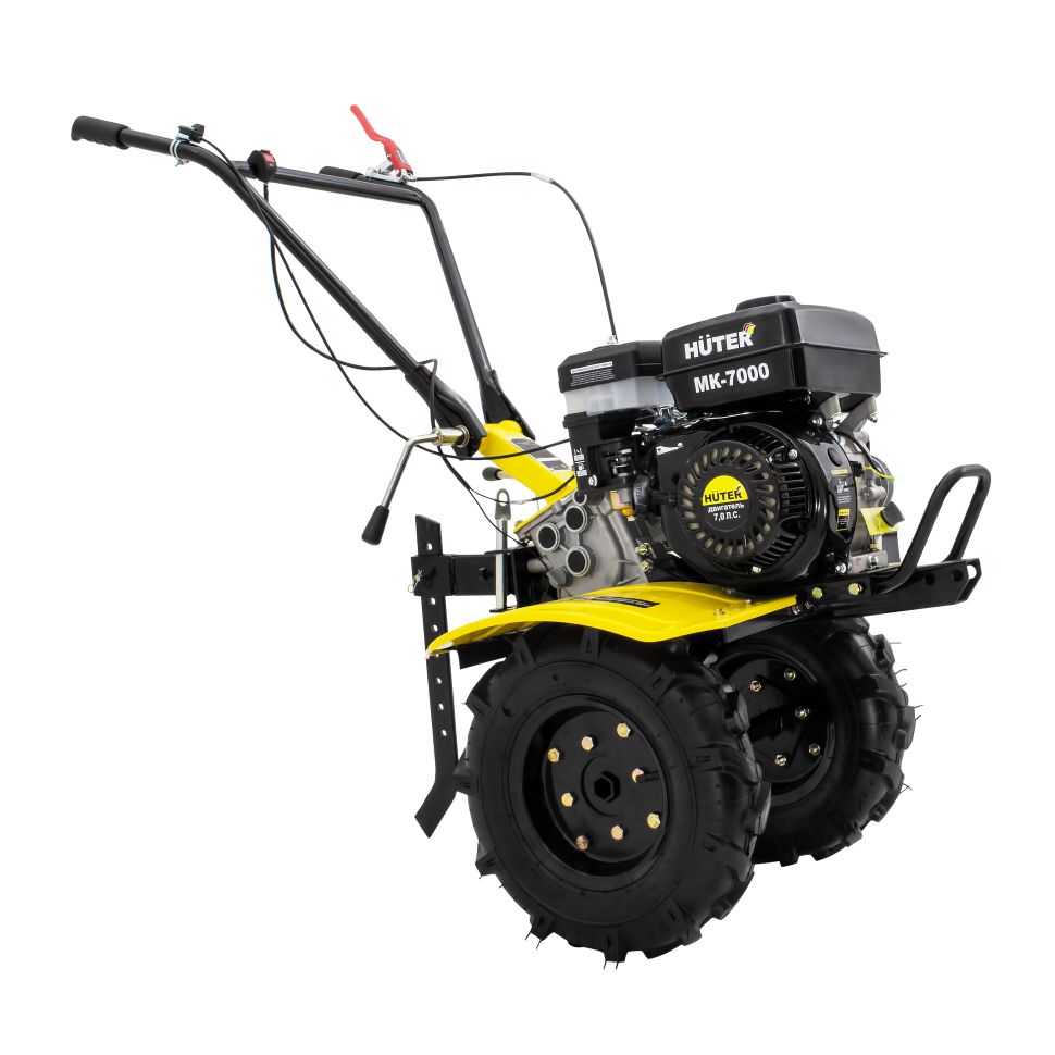 Мотоблок (сельскохозяйственная машина) HUTER MK-7000P используется для обработки почвы методом культивации, то есть её рыхления без переворота почвы, выравнивания, других операций. Агрегат дает хорошие результаты на приусадебных и фермерских хозяйствах и дачных участках, на ограниченных территориях, междурядьях, на клумбах и возле деревьев. Мотокультиватор укомплектован четырёхтактным двигателем внутреннего сгорания.Устройство мотокультиватора