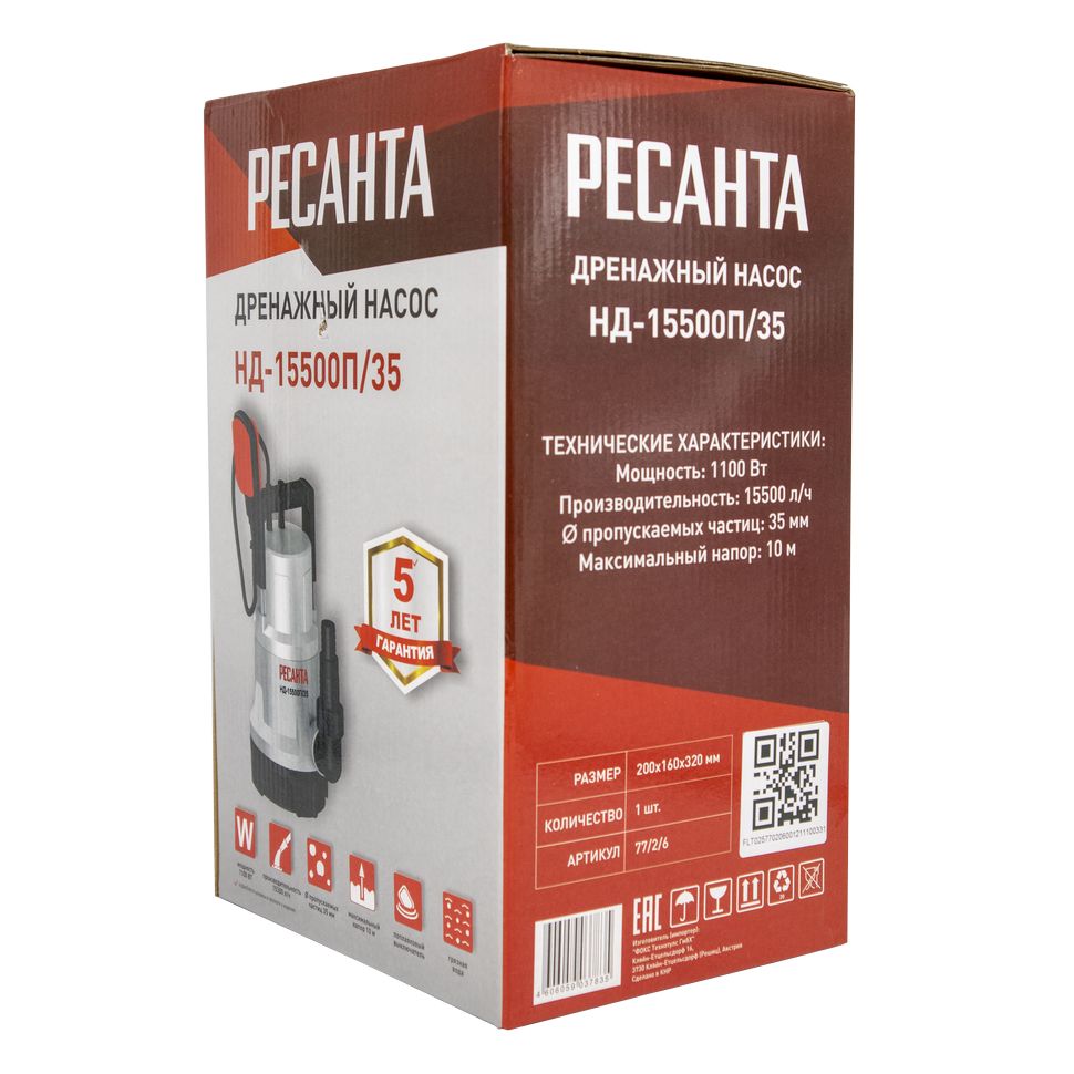 Дренажный насос Ресанта НД-15500П/35