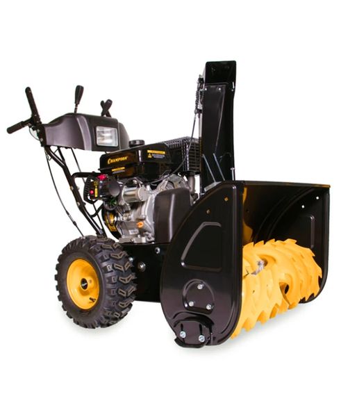 Снегоуборщик бензиновый Champion ST1170E — предназначен для уборки слежавшегося снега на больших площадях. Снегоуборщик оборудован электростартером, что позволит запустить машину от электросети 220 В, нажатием на кнопку. Благодаря наличию фары, возможно работать в темное время суток, а так как зимой в европейской части страны темнеет рано, функция очень актуальна.