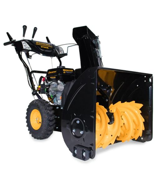 Снегоуборщик бензиновый Champion ST662E — комплектуется высокопроизводительным двигателем с верхним расположением клапанов, который легко запускается даже при отрицательной температуре. Основной особенностью данного двигателя является низкий расход топлива. Вместительный топливный бак, позволяет использовать снегоуборщик при непрерывной работе.