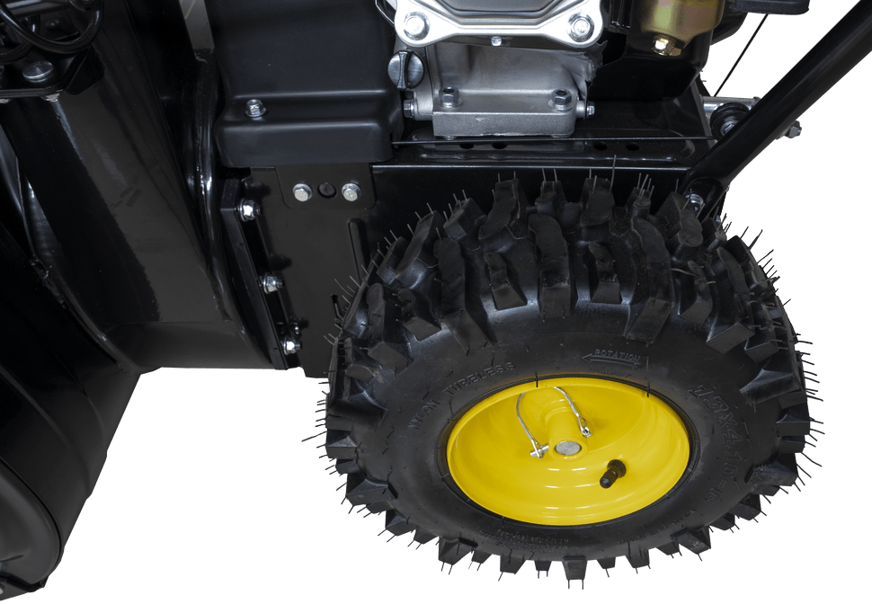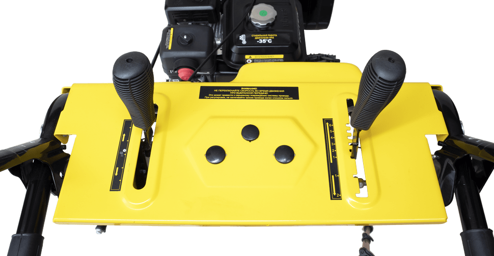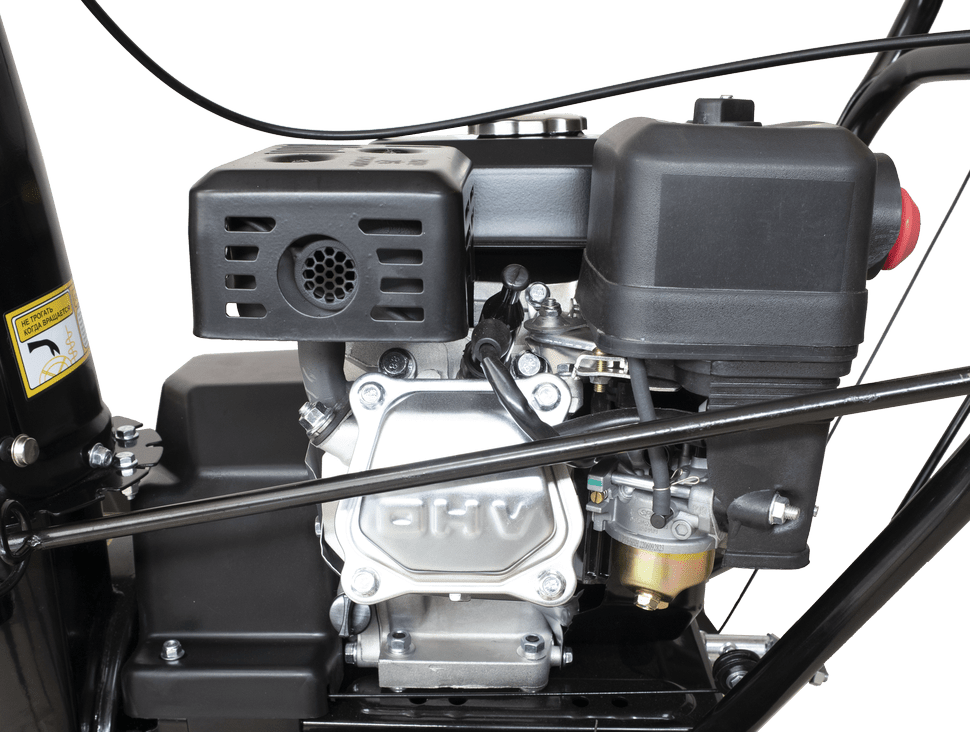 Двухступенчатая система шнек+вентилятор эффективно измельчает слежавшийся снег с ледяной коркой. В зависимости от особенностей снежного покрова можно выбрать одну из 6 передних и 2 задних скоростей. В качестве топлива для снегоуборочной машины используется бензин АИ-92. Бак объемом 3,6 л обеспечивает длительность непрерывной работы без дозаправки. Запуск двигателя осуществляется с помощью ручного стартера.