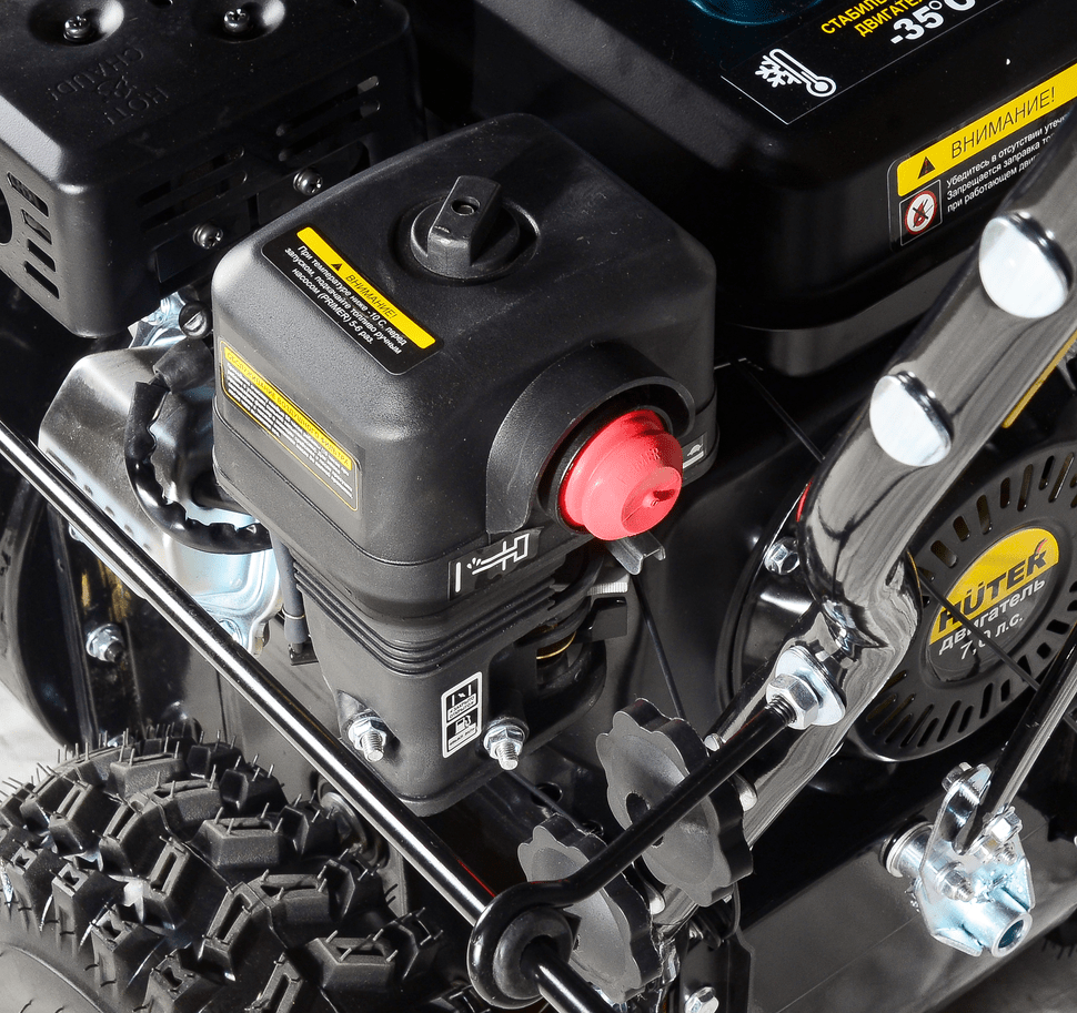 Двигатель имеет верхнее расположение клапанов. Он адаптирован для работы в низких температурах. А мощности в 7 л.с. хватит для выполнения всех предполагаемых задач на придомовой территории.