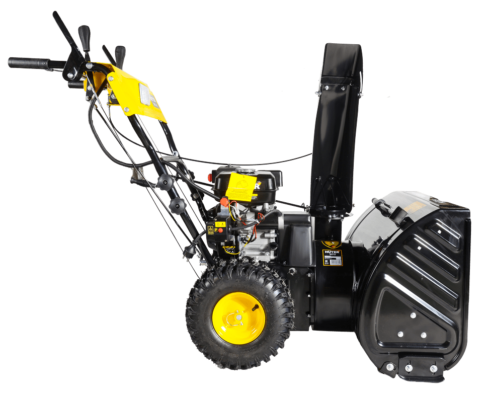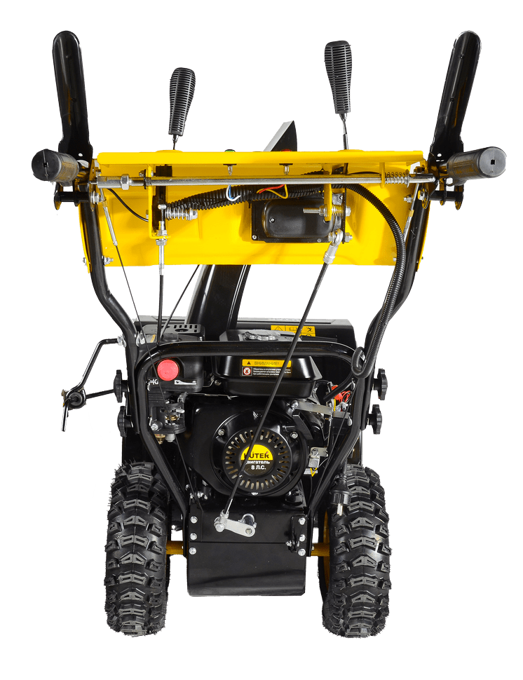 Устройство работает на бензиновом двигателе мощностью 8 л. с., что делает его более мобильным по сравнению с электрическими аналогами. Для работы двигателя используется обычный бензин АИ-92. Топливный бак имеет объем 3,6 л, что позволяет заниматься уборкой снега в течение длительного времени. Для удобства включения агрегата модель оснащена электростартером, в случае необходимости можно пользоваться ручным стартером. Во время движения установки снег захватывается ковшом шириной 62 см и передается шнеком на вентилятор, который отбрасывает его через желоб на расстояние до 15 м. Сторону выброса можно менять с помощью рукоятки. Шнек имеет зубчатую форму, а нижняя часть ковша оснащена механическими лыжами, это позволяет устройству легко справляться со слежавшимся, утрамбованным, заледеневшим слоем снега без риска повреждения поверхностей. Самоходный снегоуборщик установлен на мощные колеса с зимним протектором, исключающим проскальзывание. В конструкции предусмотрена возможность переключения скоростей: 6 вперед и 2 назад. Для удобства работы модель оснащена ручками с подогревом и фарой.