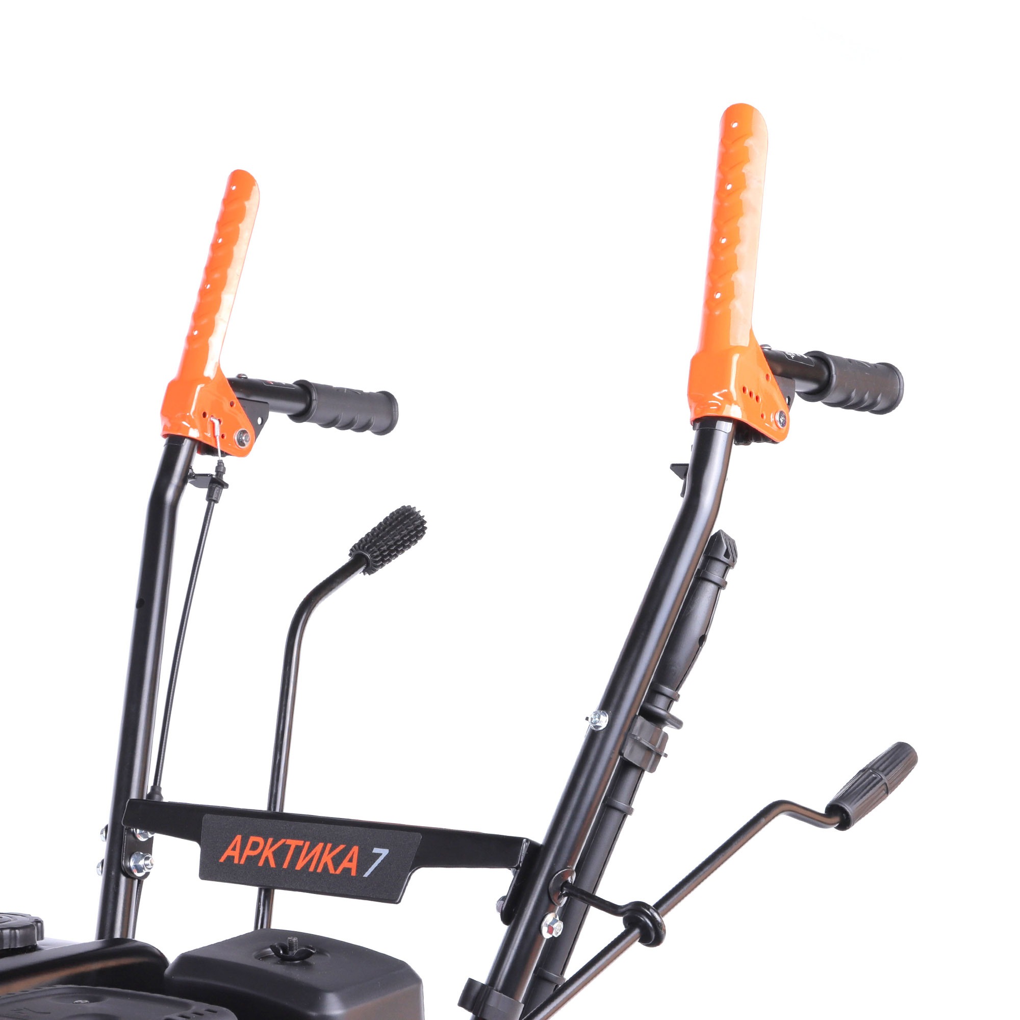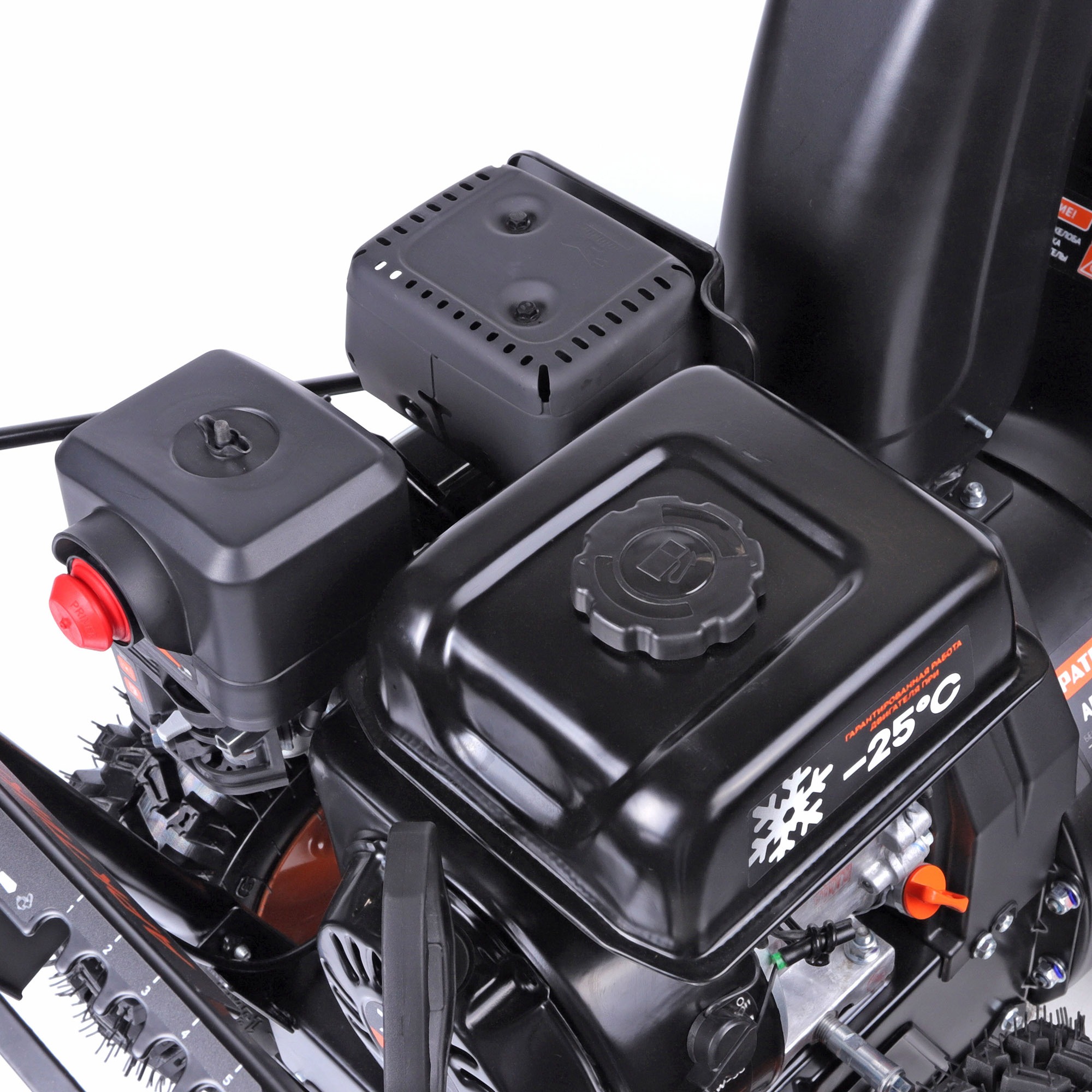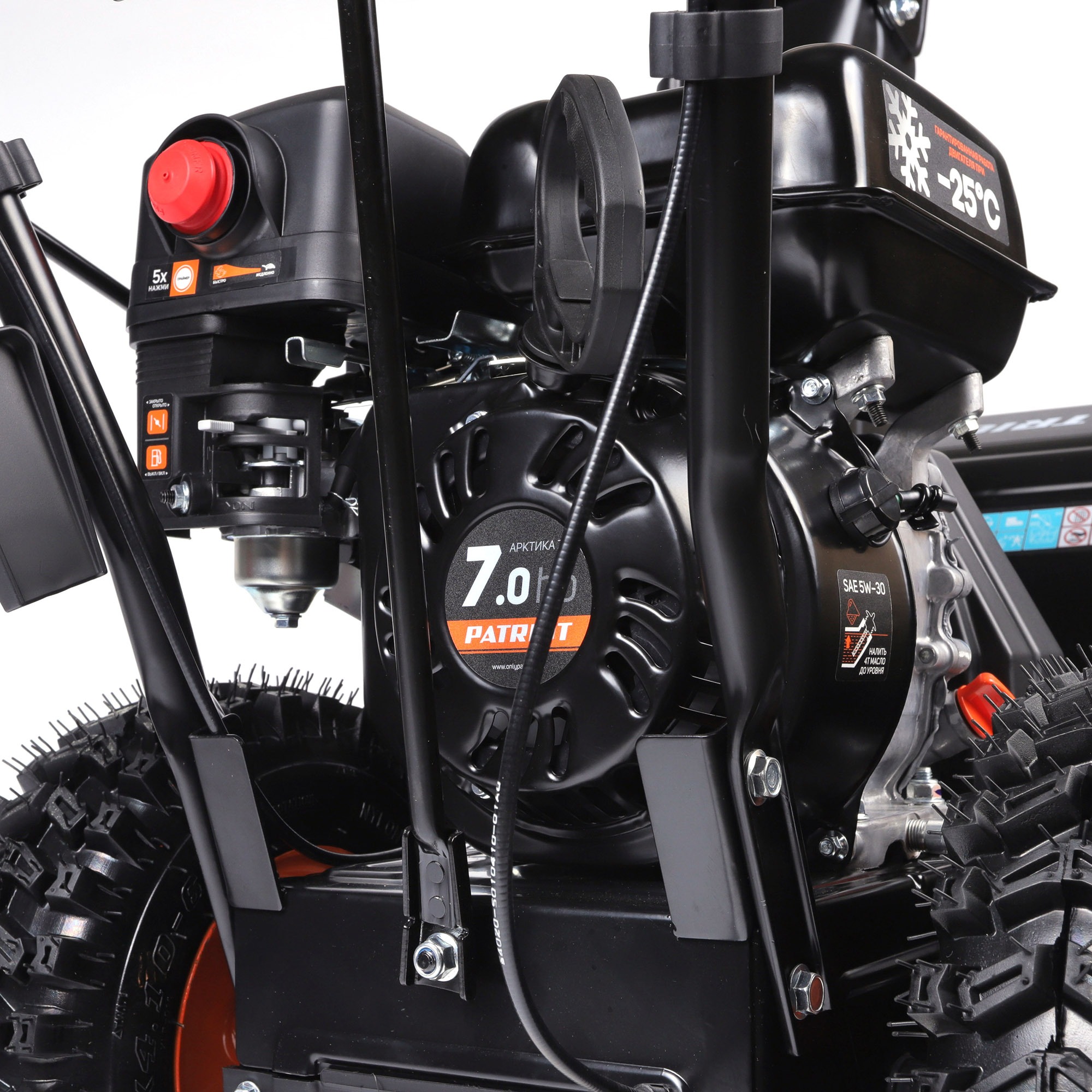 Снегоуборщик PATRIOT АРКТИКА 7 разработан специально для суровых зим (до -25°C). Легкий в управлении снегоуборщик бензиновый (7л.с.) с двигателем объемом 2,6 литра подходит для очистки заснеженной территории. Надежный металлический шнек (диаметр 25 см) перемалывает зубьями заледенелый наст. Максимальная частота вращения шнека 1500 об/мин. Пользователю доступны 5 передач для движения вперед и 2 передачи — назад.