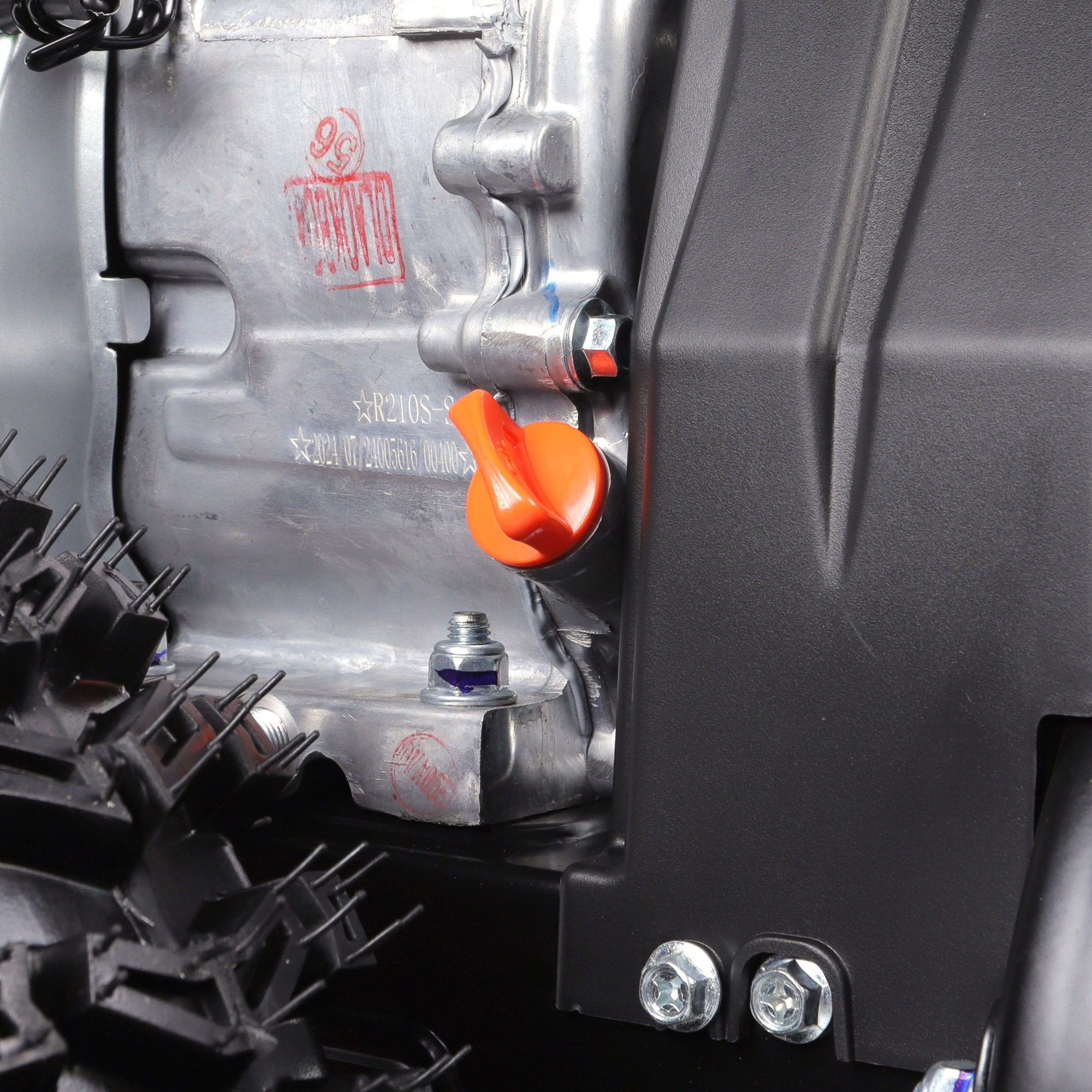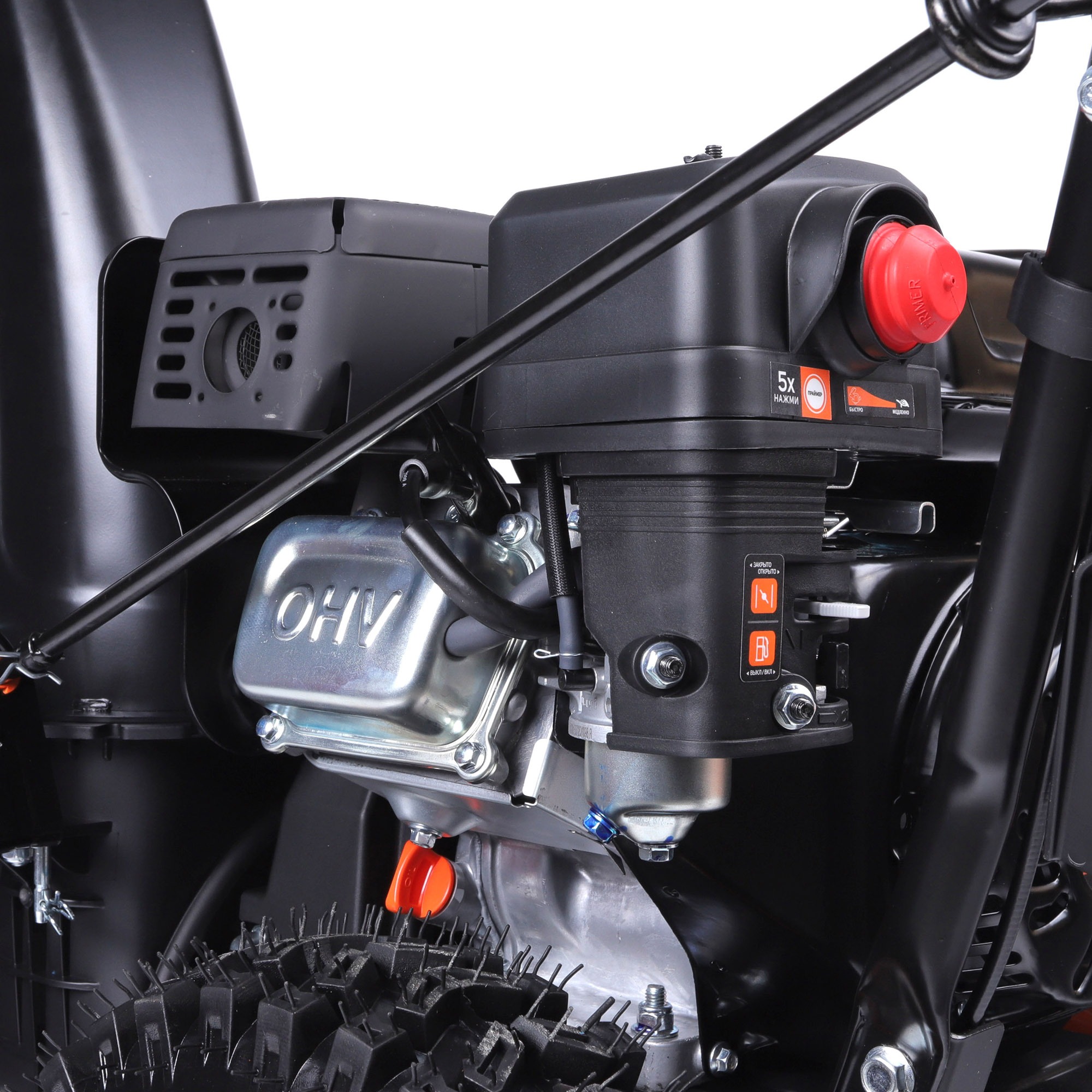 Оснащен четырехтактным двигателем с мощностью 7 л.с. и объемом 209 см.куб. Работает бензиновый снегоуборщик самоходный на бензине (АИ-92 и выше) и масле (G-Motion Arctic).
