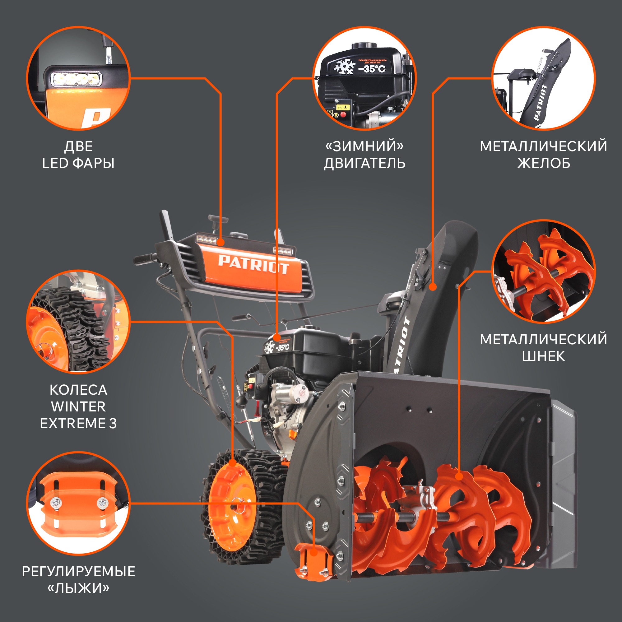 Мощный снегоуборщик PATRIOT Сибирь 110 Е подходит для уборки снега и расчистки снежных заносов. Высокий зубчатый шнек с агрессивным дизайном перемалывает любой вид снега, включая сырой и обледеневший. Система XTS расширяет возможности для уборки на 10%, увеличивая площадь и высоту захвата. Созданные для работы в зимних условиях колеса серии Winter Extreme с гусеничным протектором гарантируют высокую проходимость и маневренность. Профессиональный двигатель способен работать при температуре до -35 градусов, а функция электростарта позволяет запустить его по нажатию одной кнопки. Для работы в темное время модель оснащена светодиодными фарами и системой подсветки зоны работы двигателя. Управление вынесено на отдельную панель, дающую быстрый доступ ко всем его элементам.