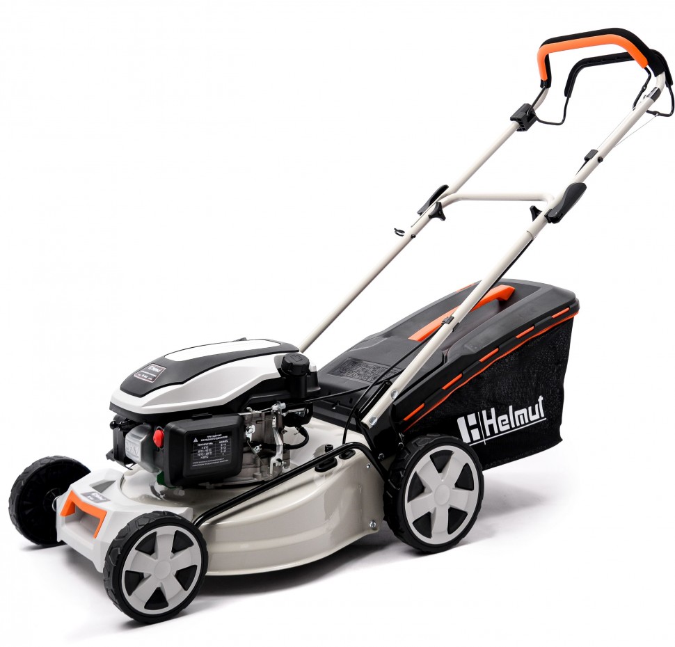 Газонокосилка бензиновая Helmut TR 46S – простая в использовании самоходная газонокосилка, идеально подходящая для кошения травы на участках средней и большой площади. Прочная стальная дека с режущим ножом 46 см и надежный 4-тактный двигатель с облегчённым запуском обеспечивают высокую производительность и длительный ресурс эксплуатации. Мягкие эргономичные, складные рукоятки снижают утомляемость при работе длительное время, центральная регулировка высоты кошения облегчает работу. В стандартной комплектации газонокосилка может использоваться либо в режиме выброса скошенной травы вбок, либо со сбором травы в травосборник. Нож специальной формы обеспечивает создание мощного воздушного потока и эффективный сбор скошенной травы, что придает газону красивый и ухоженный вид. Газонокосилка имеет функцию мульчирования и функцию самоочистки деки.
