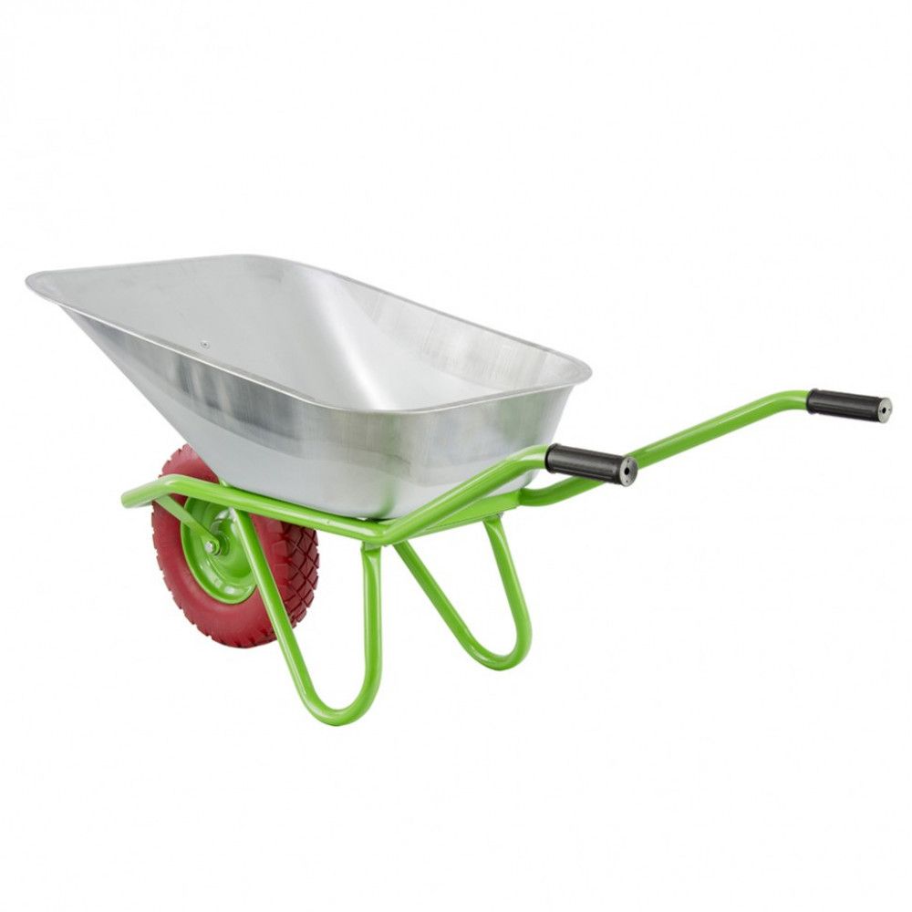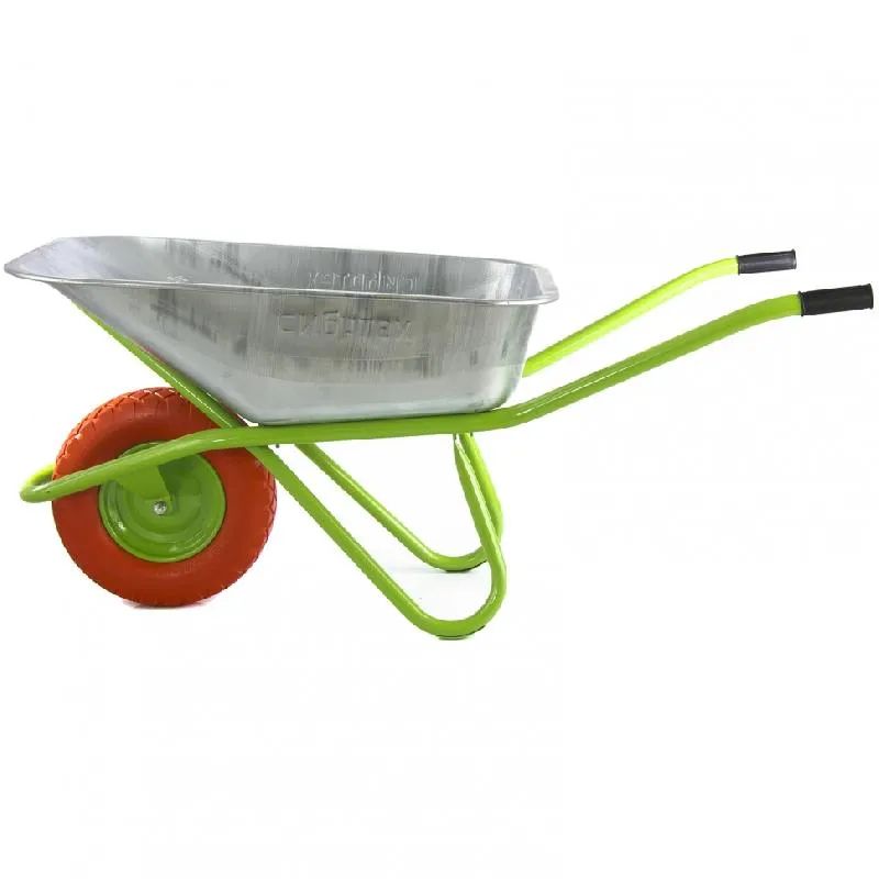 Строительная одноколесная тачка СИБРТЕХ, 90л/180кг предназначена для строительных, садовых, дачных, сельскохозяйственных работ. При помощи тележки можно перевозить груз с большим объемом и весом, опоры кузова обеспечивают большую грузоподъемность. Изделие выполнено из оцинкованной стали. Прочность придают завальцованные борта, а легкость доставки и перемещения обеспечивают шариковые подшипники.