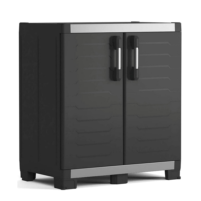 Температурный режим использования -5°C to +40°C. Это способствует долгому сроку службы и делает пластиковые шкафы подходящей мебелью для хранения хозяйственного инвентаря, садовой мебели, различного оборудования, бытовых аксессуаров и предметов в помещении.