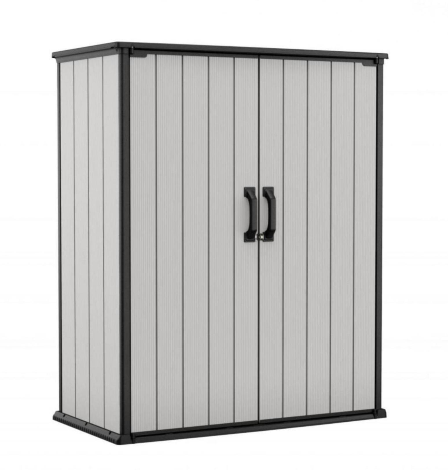 Большой и универсальный шкаф Premier High Store имеет простой и элегантный дизайн, цвет и текстуру поверхности напоминающую натуральную древесину. Шкаф будет незаменим всюду, где необходимо организованное хранение садовых принадлежностей и прочих бытовых предметов. Прочная конструкция защищает хранимые предметы от влаги и ветра. Изготовленный из высококачественного полипропилена шкаф Premier High Store прослужит десятки лет, а ещё его можно покрасить в любой цвет.