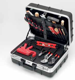 Набор наиболее ходового сантехнического инструмента из 21 предмета в надежном пластиковом кейсе.