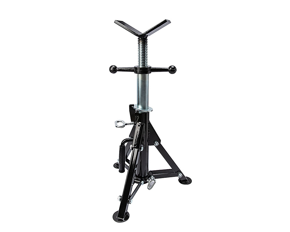 Неподвижная низкая складная стойка без направляющих роликов для труб диаметром до 325 мм (12″). Регулировка по высоте от 420 до 820 мм. Возможность установки роликов Rotorica. Максимальная нагрузка 1500 кг.