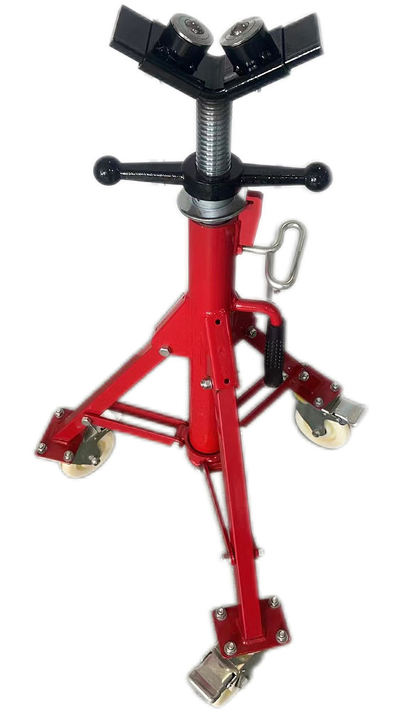 Роликовая опора для труб диаметром до 325 мм (12 дюймов), регулировка по высоте от 40 см до 80 см. Складная стойка, с 3 колесиками, с одиночными направляющими роликами. Максимальная нагрузка 400 кг.