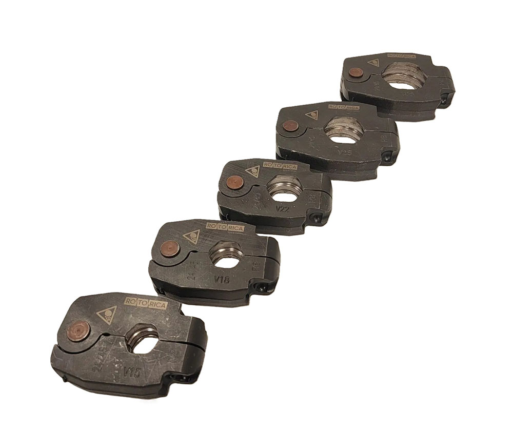 Поворотные пресс-кольца для монтажа пресс-фитингов тонкостенных металлических трубопроводов. Диаметр от 15 до 35 мм. Стандарт контура прессования V. Применяется с адаптерами R8 Mini арт. RT.1473201 и R8 Basic арт. RT.1473202.