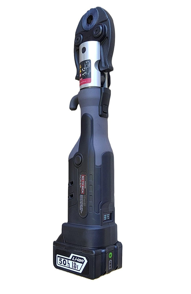 Компактный аккумуляторный мини-пресс для радиальных пресс-фитингов. OLED — дисплей. Вращение патрона 180 °. Диапазон Ø 12 — 28 мм (16 — 32 мм). Усилие обжима 19 кН. LED подсветка. Аккумулятор Li-Ion, 18 В, 5.0 А•ч.