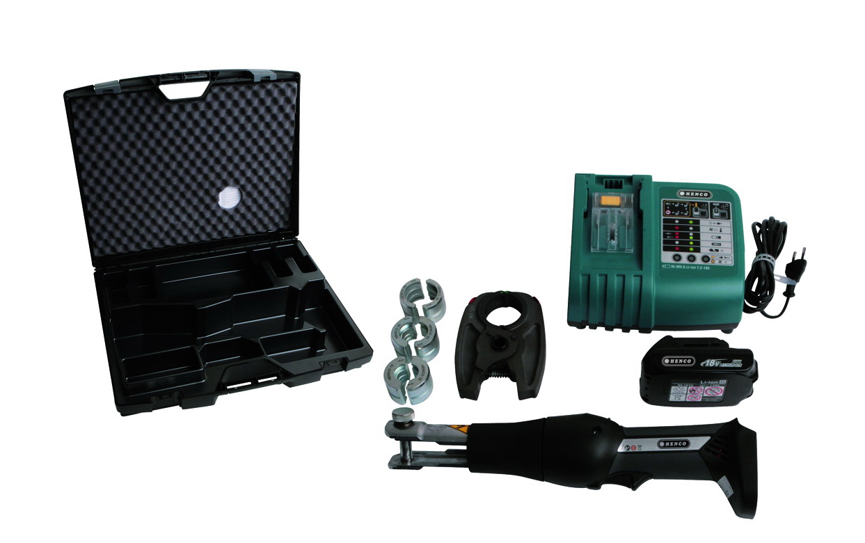 Аккумуляторный гидравлический пресс для обжима фитингов труб диаметром до 32мм. В наборе с клещами и вкладышами BE16H, BE20H, BE26H. Совместим с мини пресс-клещами основных производителей пресс-инструмента.